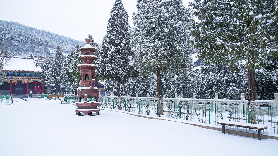 摄艳|冬春交替雪纷飞 报国古寺景如画