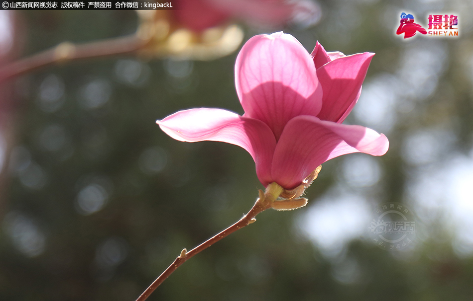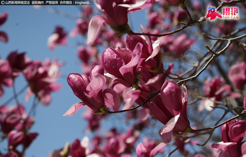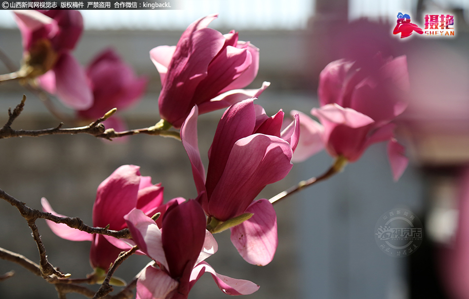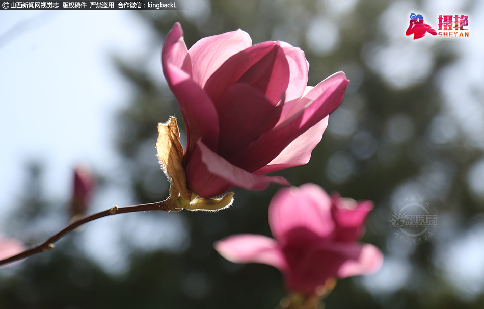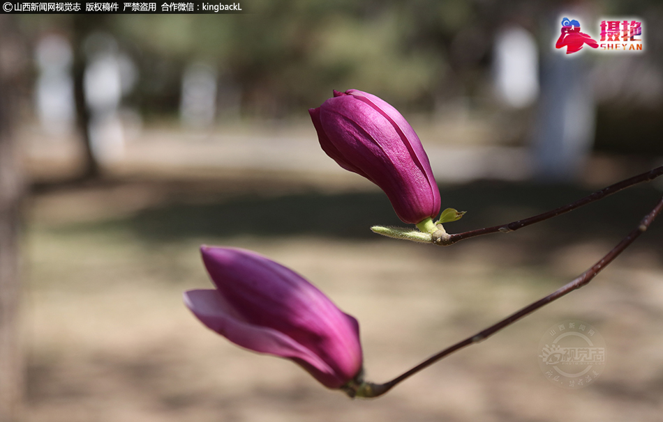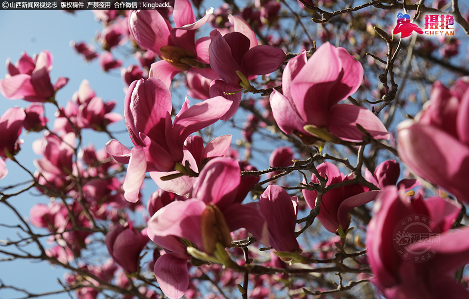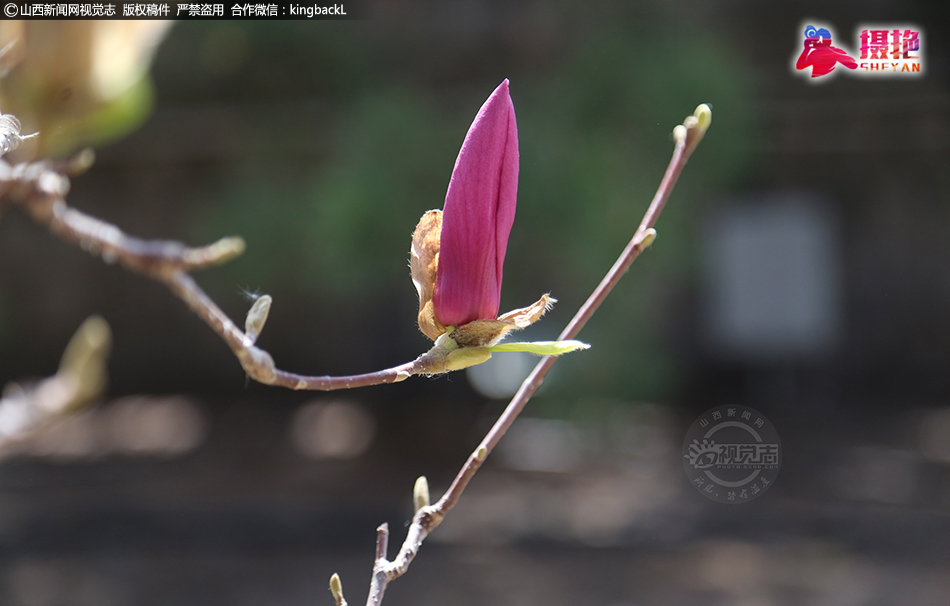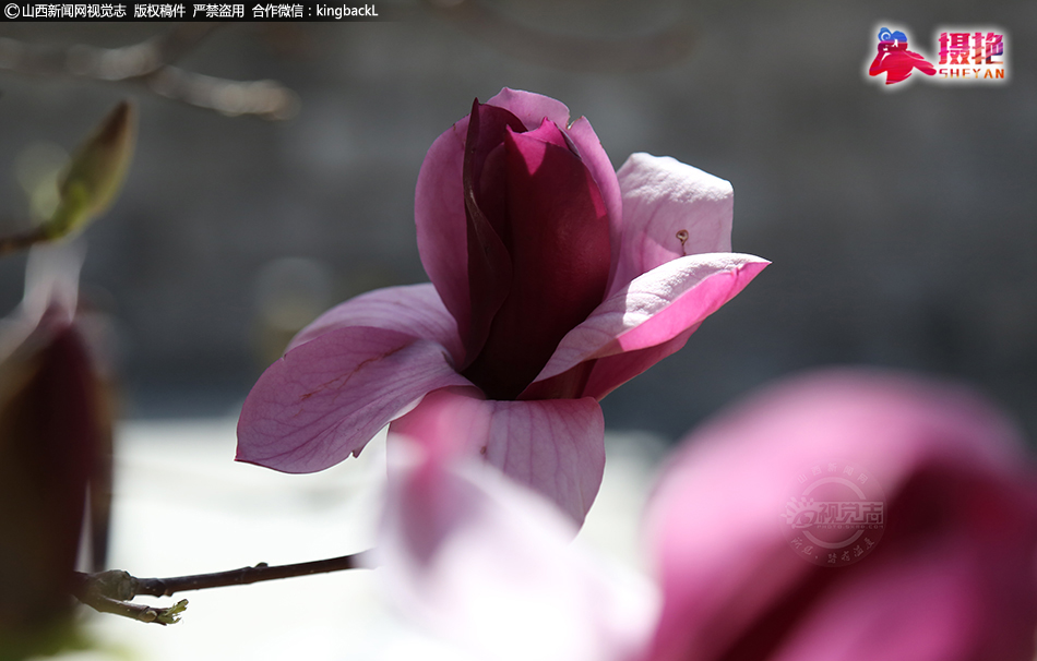 近日,太原市迎泽区墨艺苑的几株玉兰花在众花树间亭亭玉立,浅紫带白的层层花瓣紧紧相拥,有的羞答答地半开半合,有的还在含苞待放。微风拂过,不时有花瓣随风飘落,轻盈地舞动着身姿。