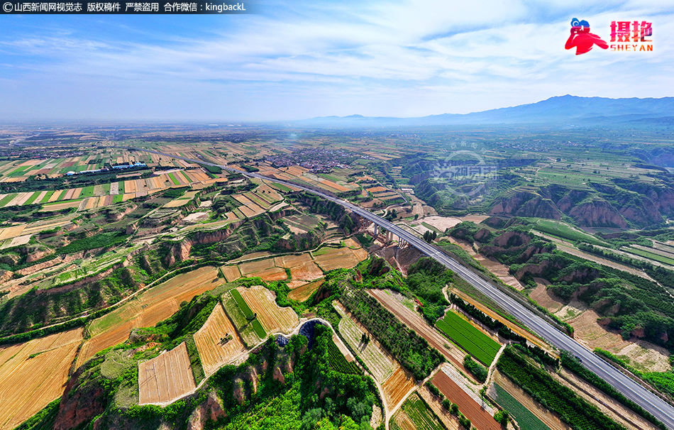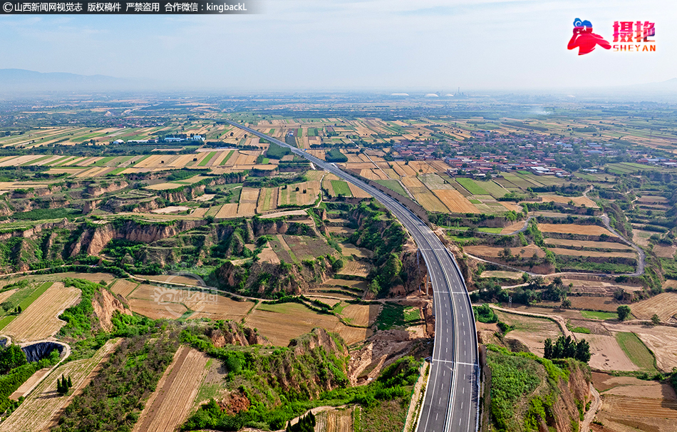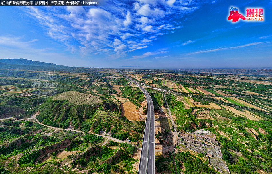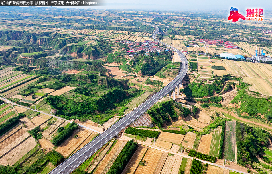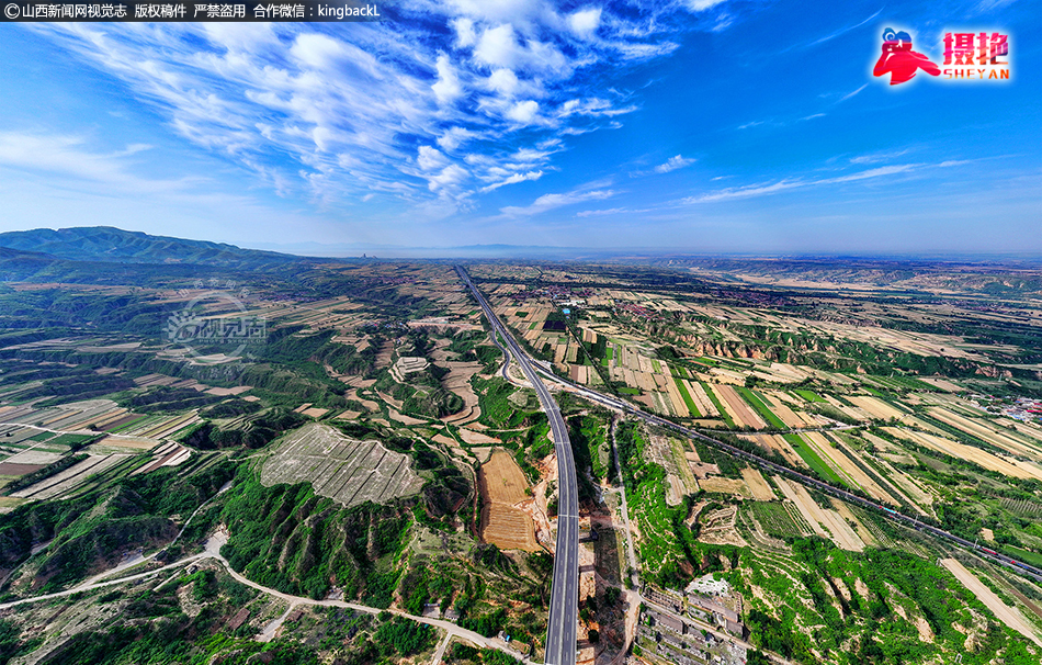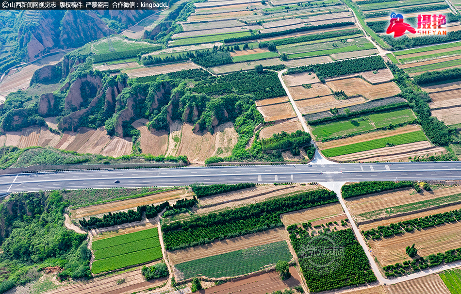 仲夏时节,鸟瞰山西省临汾市襄汾县新城镇广袤的田野,蓝天白云与新建国道、多彩田园、美丽村庄等相映成趣,共同构成一幅和美乡村新画卷。