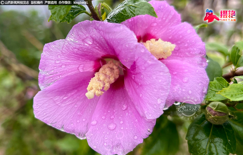 6月18日,时值盛夏,山西省运城市平陆县的乡村道路旁、公园里木槿花竞相盛开,花色娇艳,芬芳四溢,构成了一道美丽的风景线。