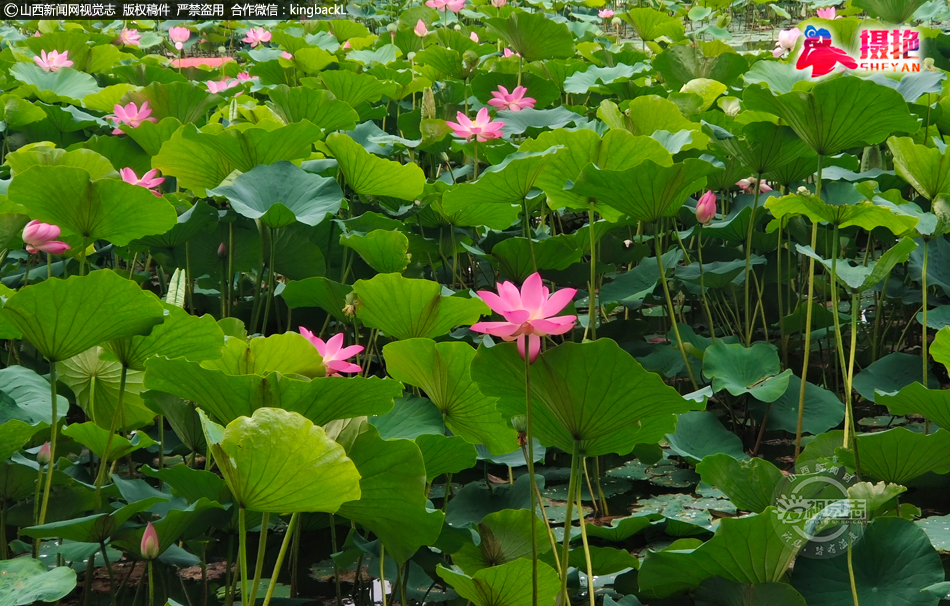 夏日炎炎,太原龙潭公园内的荷花悄然绽放,为这座城市增添了一抹清新雅致的色彩。大片的荷叶挨挨挤挤,像一把把碧绿的大伞,撑在水面上,遮挡住了夏日的燥热。粉嫩的荷花从荷叶间探出头来,有的完全盛开,露出嫩黄色的花蕊,宛如亭亭玉立的少女,娇羞地向过往游客展示着自己的风姿;有的还是含苞待放的花骨朵,鼓鼓囊囊的,仿佛随时都会绽放出美丽的花朵。
