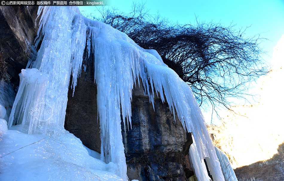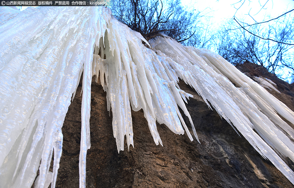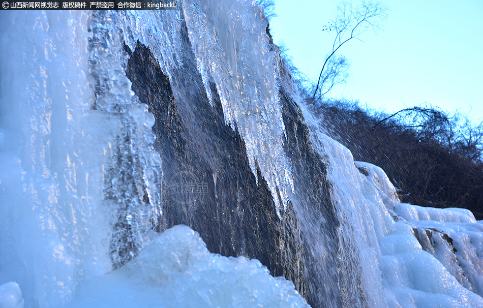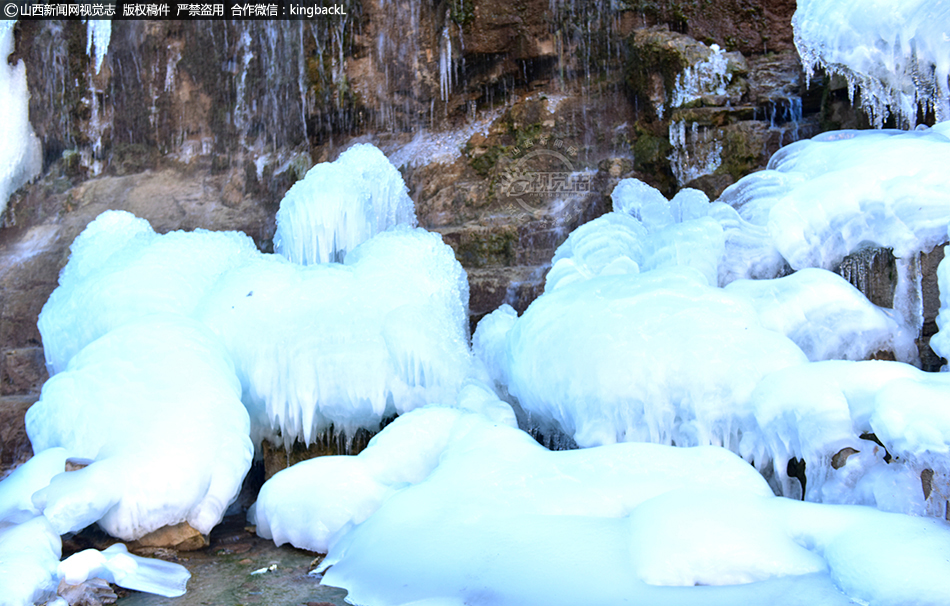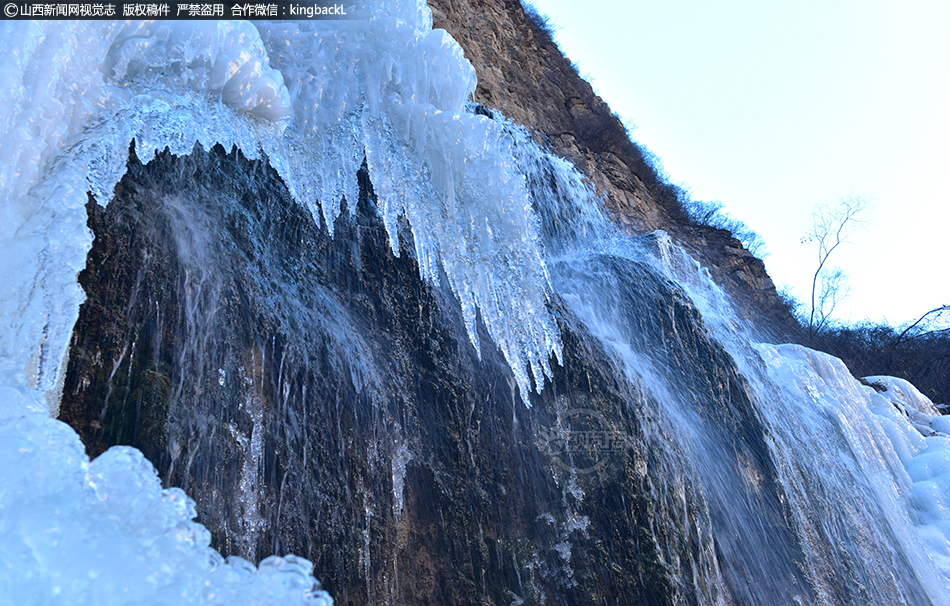 小寒时逢三九,是一年中较冷的时候,天寒地冻,寒风凛冽,滴水成冰,盂县向东沿双山线公路一路前行,在越霄山麓水占地段悬崖上的溪流形成冰瀑景观,或冰柱、或冰笋、或冰球,晶莹剔透,引得游人纷至沓来赏景打卡。