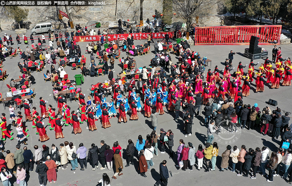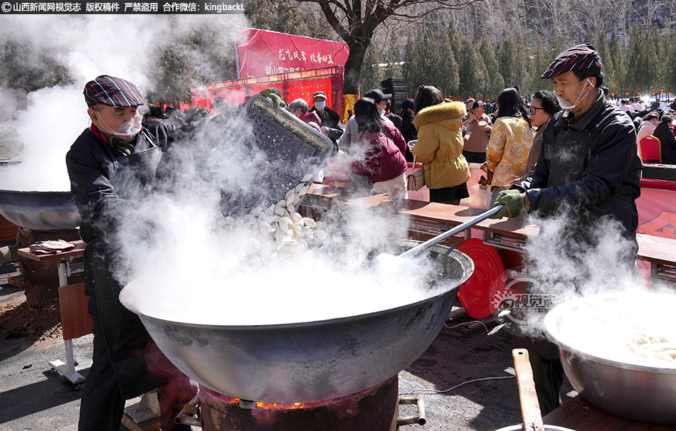 3月8日,游客排队免费领取刚煮熟的饺子。当日,山西盂县藏山风景区举办“龙飞凤舞 饺香四溢”千人饺子宴活动。据悉,此活动从3月8日至11日每天的11点至14点,该景区在推出首道门票优惠的基础上,凡是来景区游玩的游客,都可以免费品尝色香味俱全的饺子。