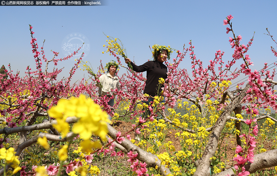 4月14日,阳城县凤城镇白沟村农业观光采摘园漫山遍野的桃花、梨花、苹果花、杏花竞相怒放,色彩斑斓,美不胜收,吸引众多游客前来赏花游玩,享受春日的美好时光。