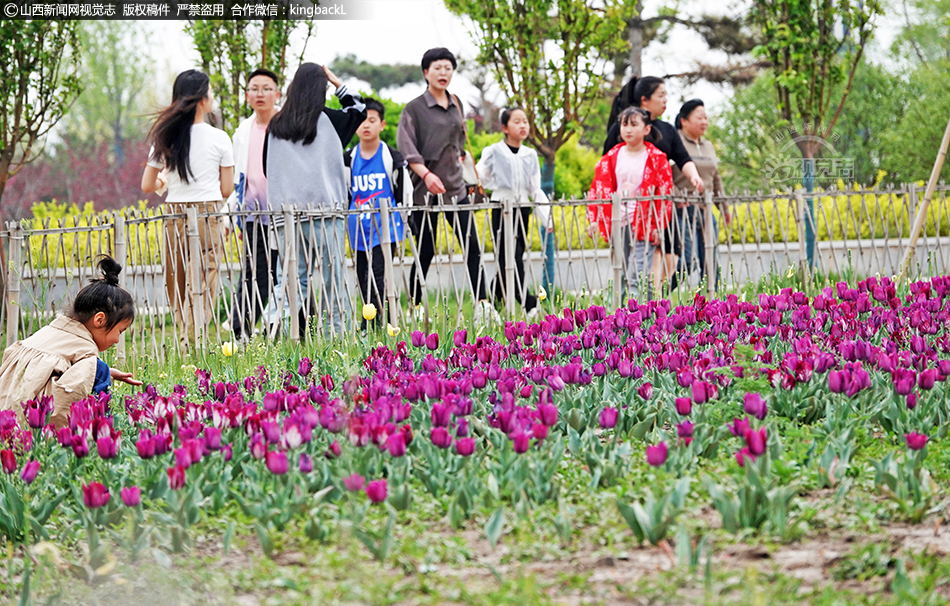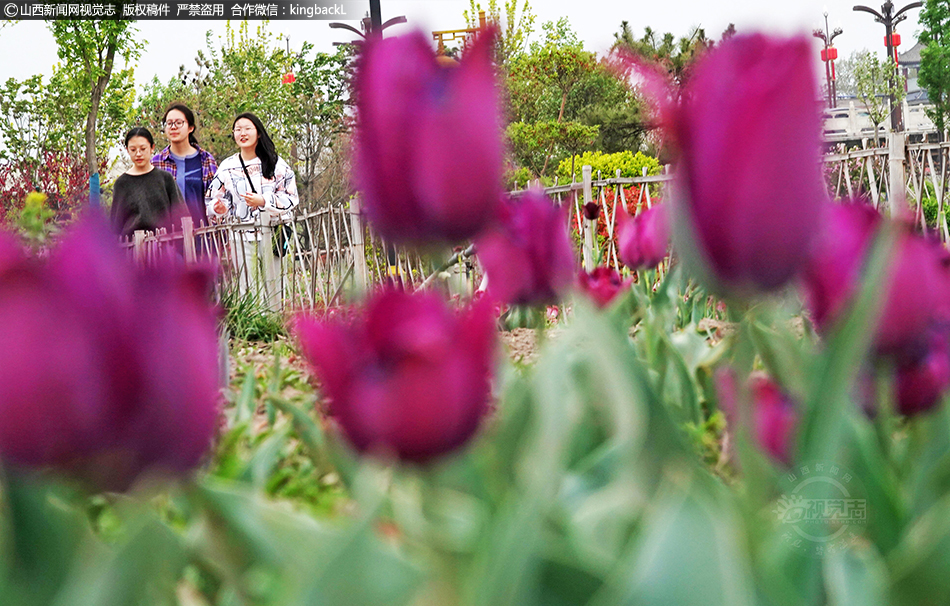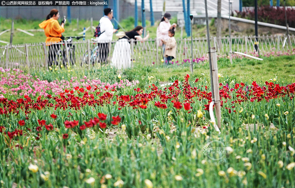 4月13日,在山西省运城市新绛县千年古城绛州护城河汾河生态公园,尽管大风来袭,飘香盛开的郁金香等花卉与鸟语花香,花红柳绿的汾河风光风景,仍吸引着众多市民和游客欢聚一堂赏花拍照,骑行跑步健身,沐浴着花香四射北国春光之美。