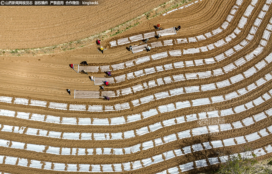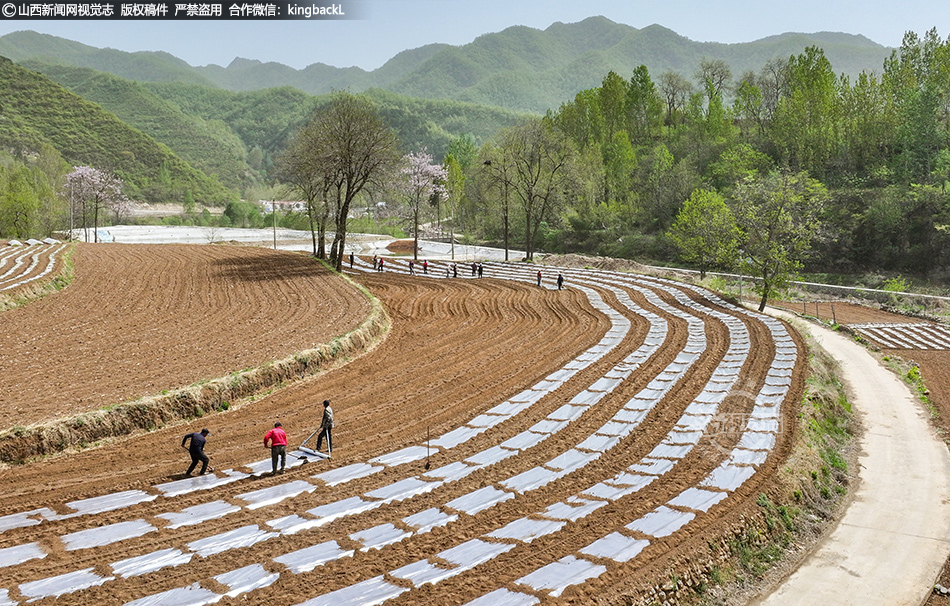 4月22日,在运城市夏县中条山深处的泗交镇温峪村,互助组社员们抓住雨后良机,抢墒抢时开展春播地膜覆盖作业,田间地头一派繁忙景象。