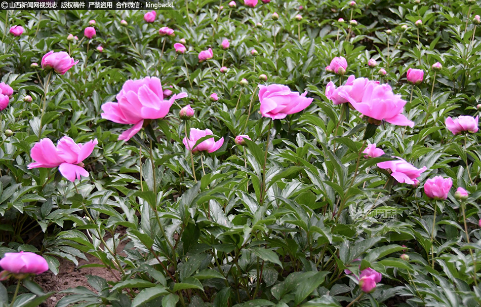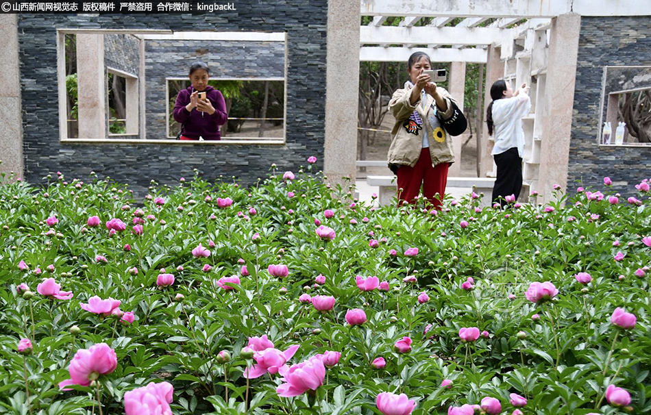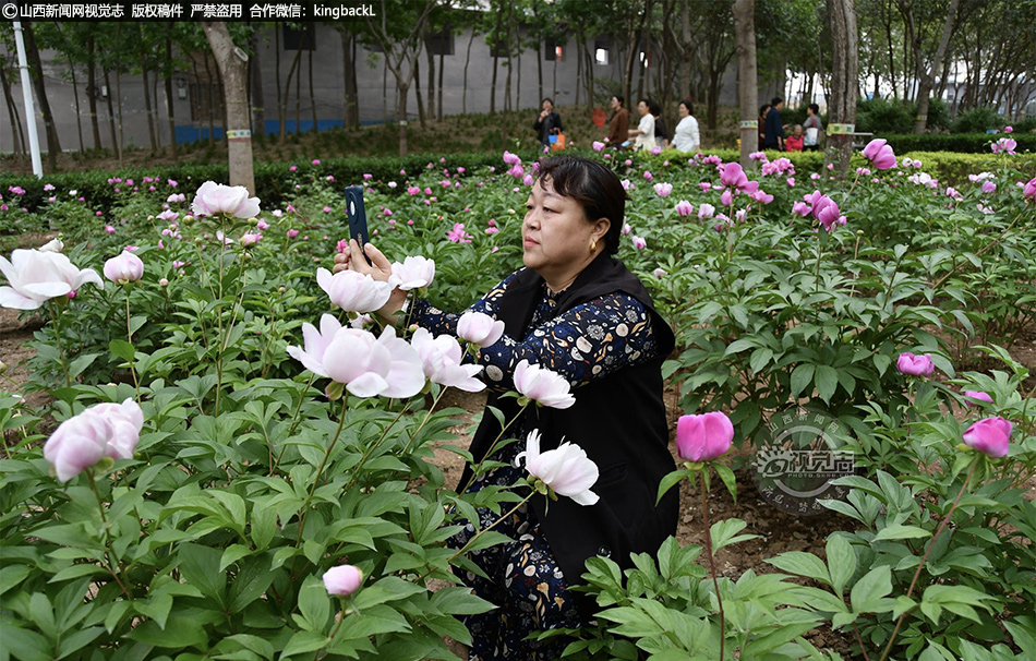 4月22日,运城市圣惠公园,游客在芍药园拍照打卡。