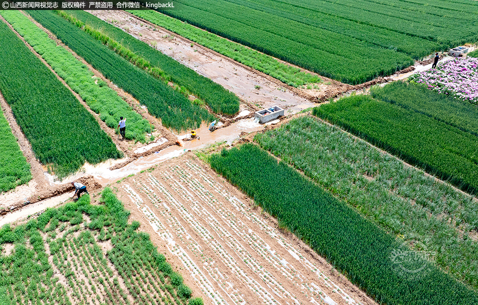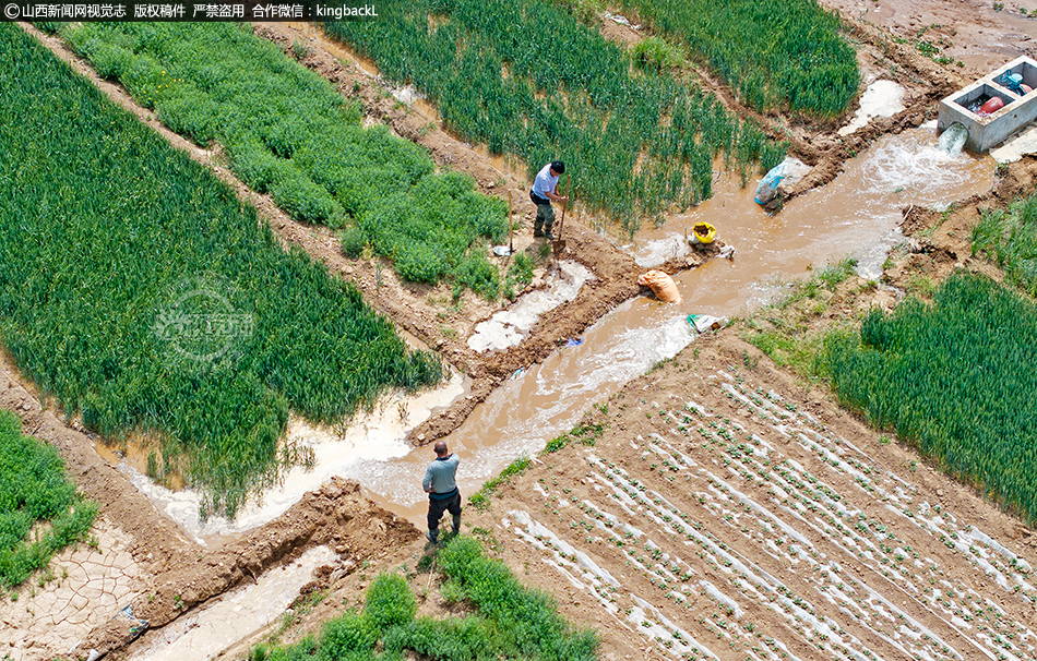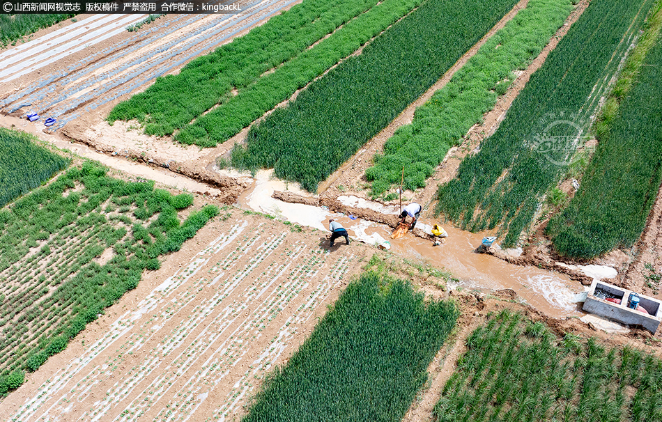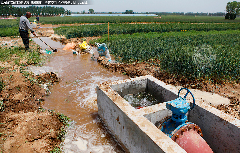 5月7日,在山西省临汾市襄汾县西贾乡东毛村,农民在为小麦进行浇灌。