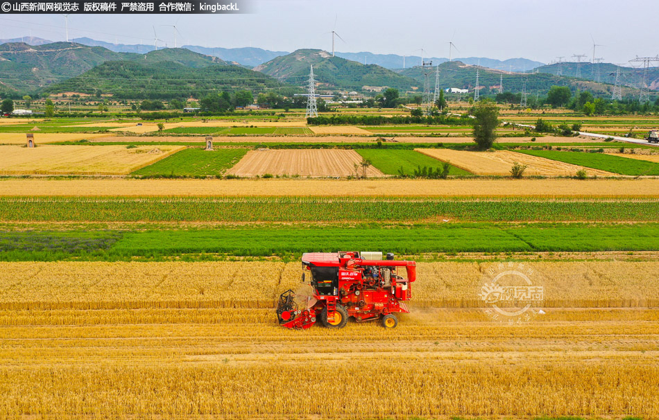 5月26日,夏县瑶峰镇大洋村村民在田间收获小麦。当前,运城市夏县30多万亩小麦陆续进入成熟收割期,各地农民抢抓晴好天气,使用联合收割机抓紧抢收,确保颗粒归仓。