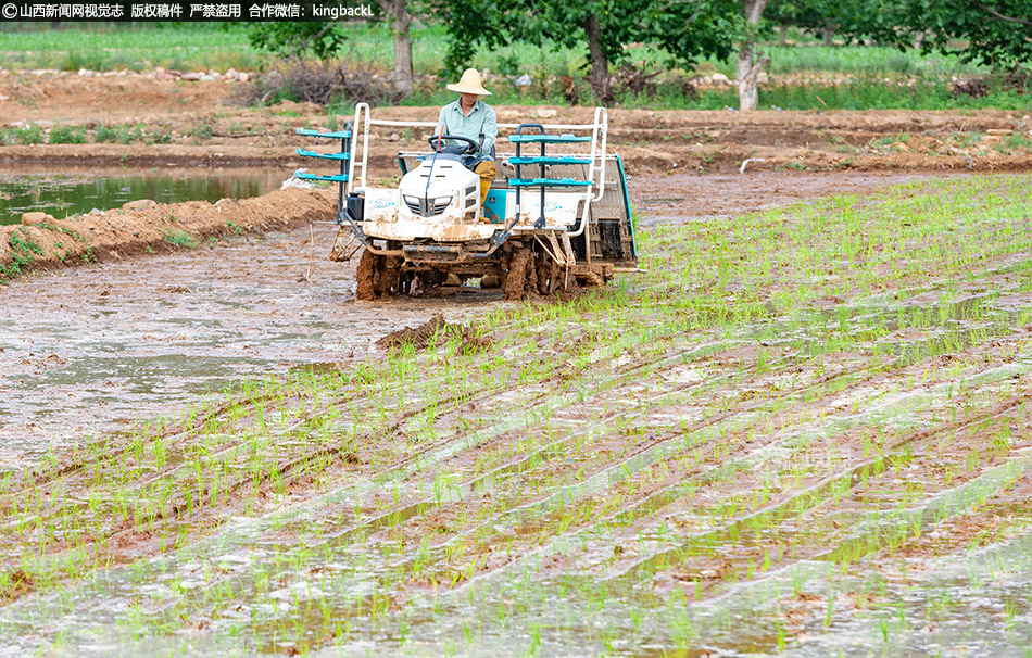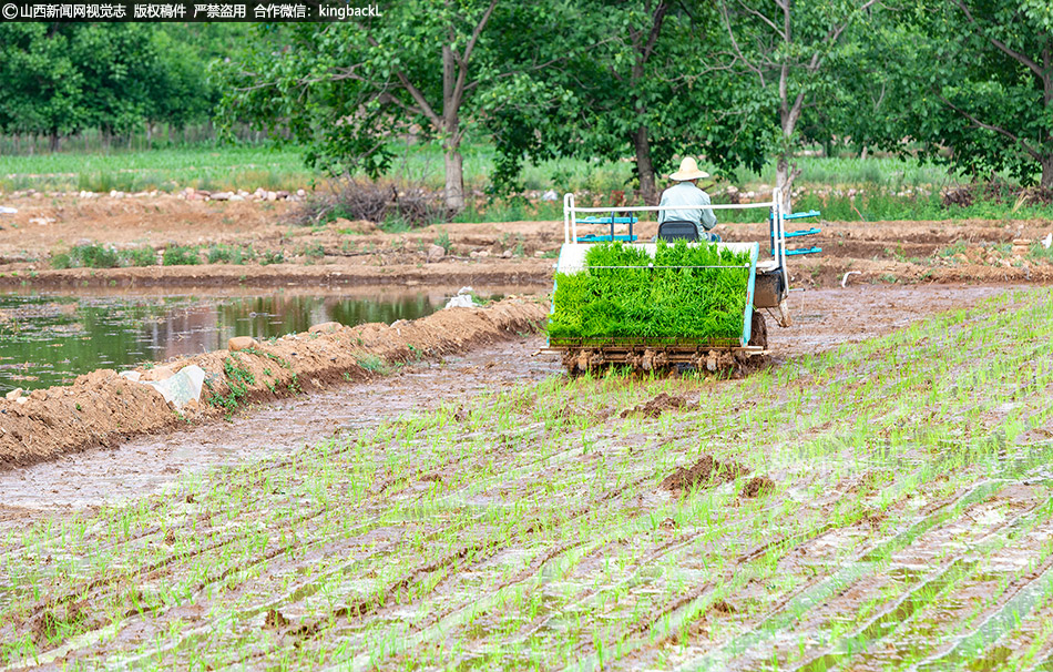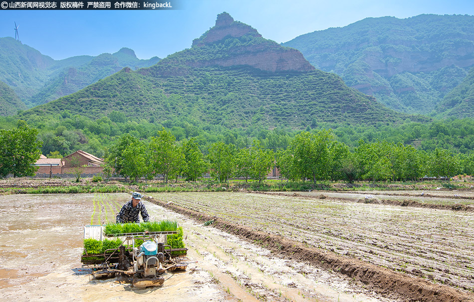 6月5日,山西省左权县拐儿镇河东村的田野上,插秧机在平整的水田中来回穿梭,进行插秧作业。今年,该村水稻种植面积从去年的200亩扩大至300余亩,特色农业发展呈现强劲势头。