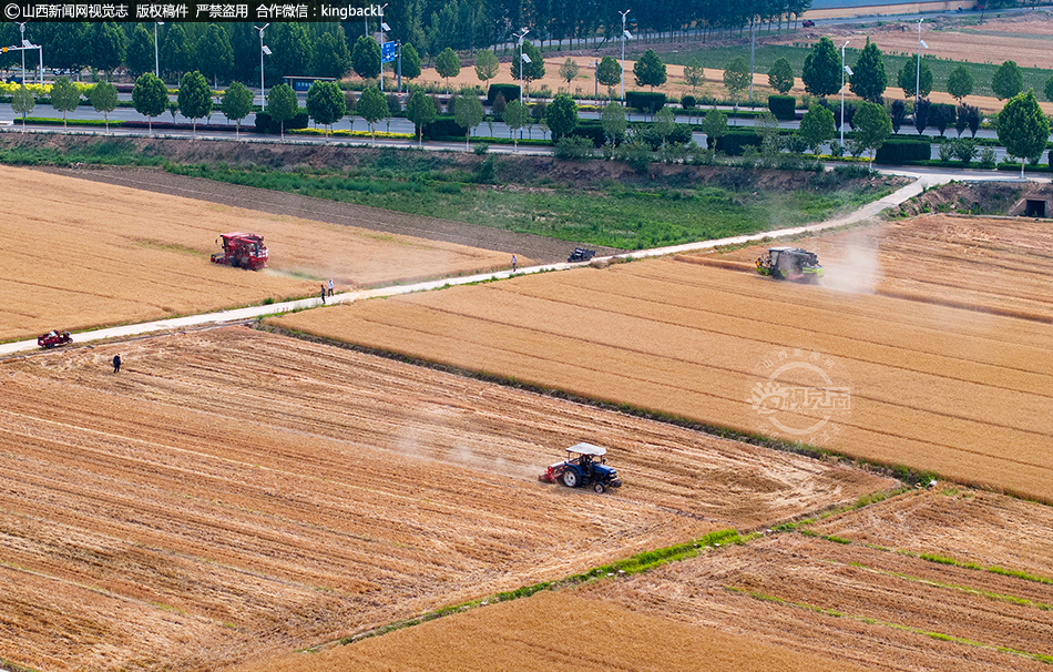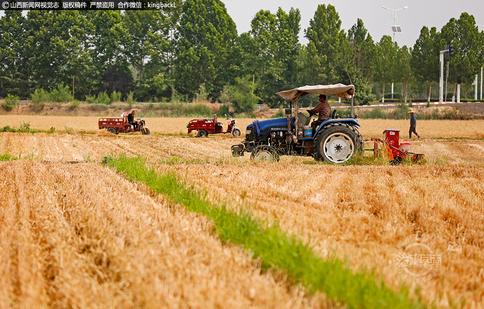 三夏时节,山西省临汾市襄汾县农民抢抓农时,开展小麦抢收、玉米抢种等农业生产活动,确保夏粮颗粒归仓,秋粮种足种好,田间地头呈现一派忙碌的景象,大规模的机械化作业也为“双抢”按下了“快进键”。