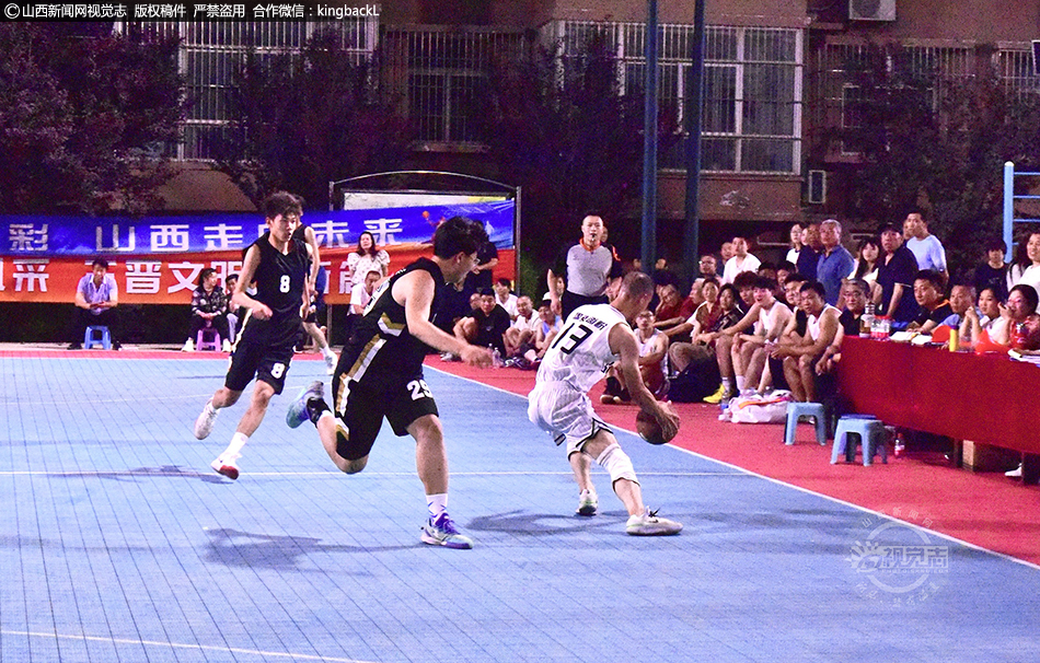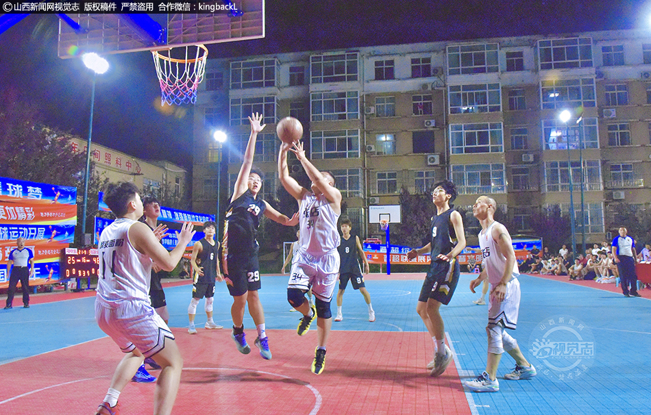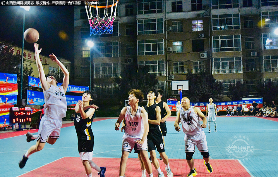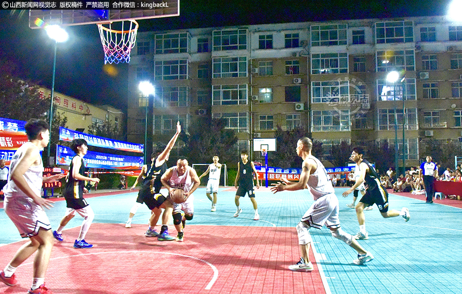 6月16日,球员在山西省运城市平陆县张店镇张店村社区篮球场上激烈角逐。来自全县10支球队齐聚一堂,在10天时间内,展开46场激烈角逐。现场高潮迭起,围观群众的掌声、欢呼声、加油声不断、此起彼伏。