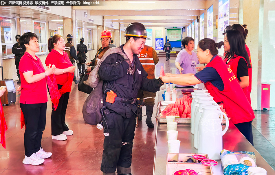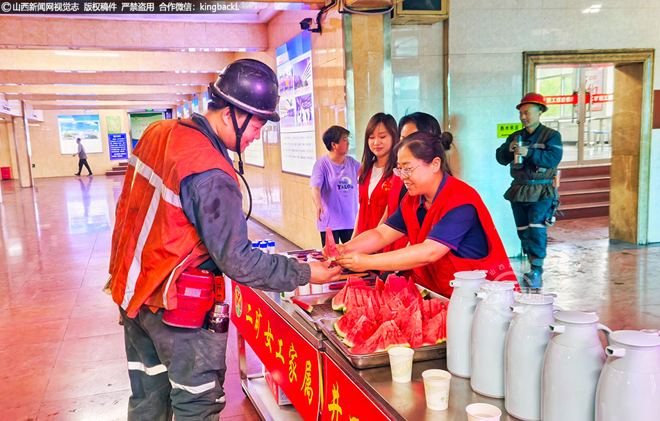 活动现场,女工家属协管员们热情满满,将一块块切好的西瓜递到上下井职工手中,同时端上一杯杯精心熬制的绿豆汤。“师傅,天太热了,快来吃块西瓜,喝杯绿豆汤解解渴!”“工作再忙,也要注意防暑降温,记得适时休息,保重身体!”一声声暖心的叮嘱,饱含着浓浓的牵挂。这份清凉与关怀,不仅驱散了夏日的暑气,更化作职工们奋进的动力,激励着大家在岗位上勇挑重担,砥砺前行。