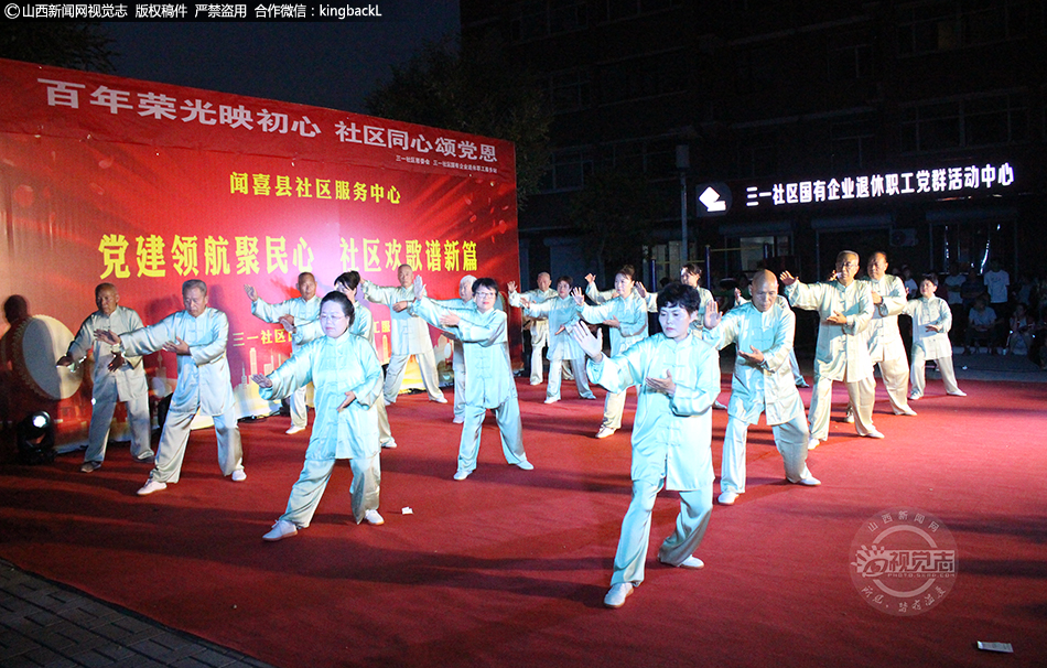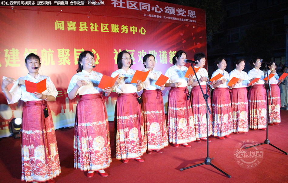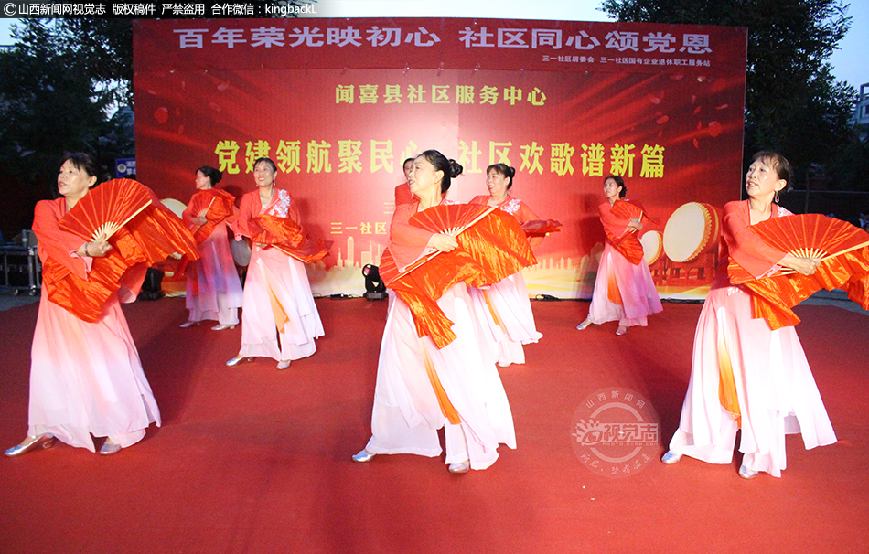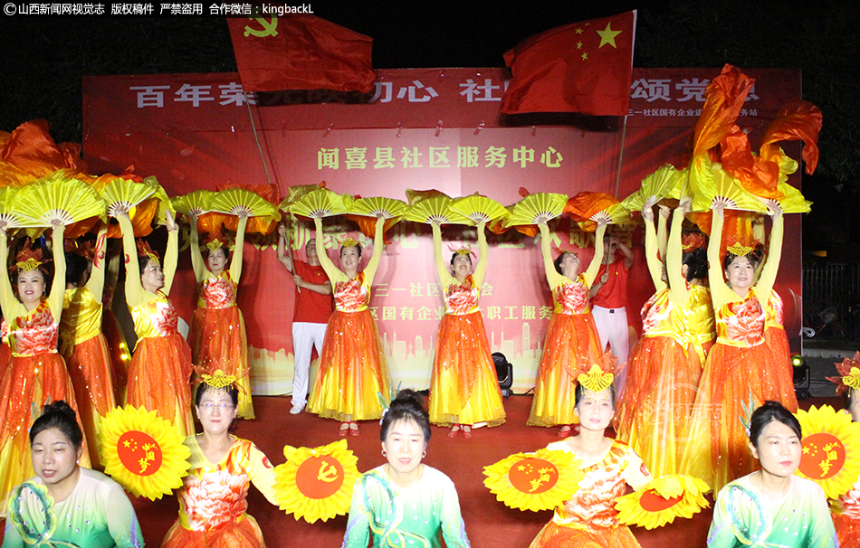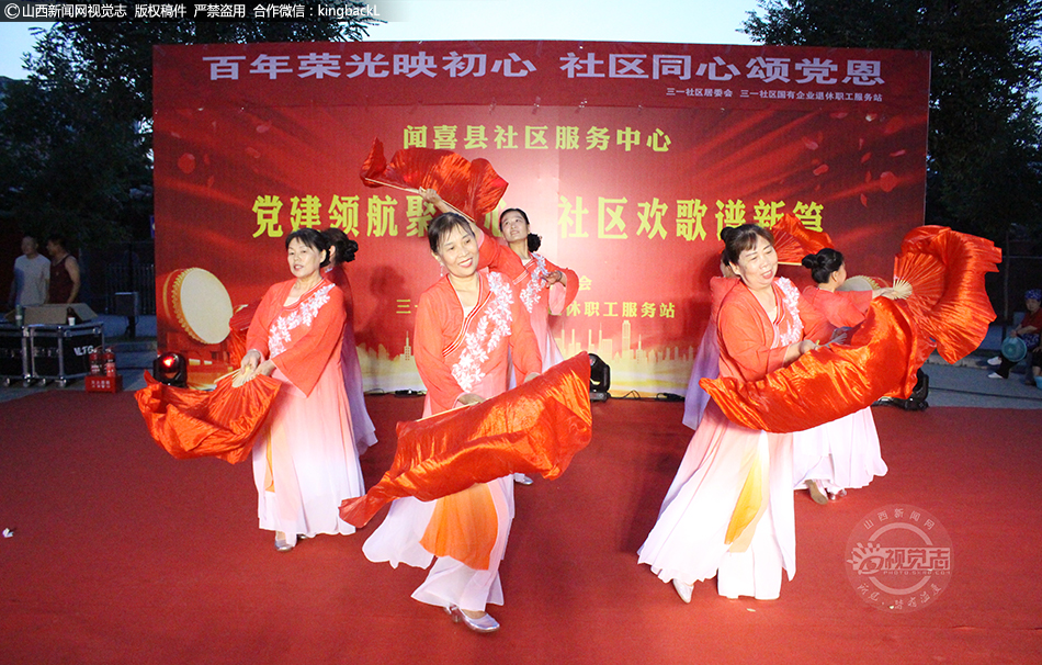 七一之际,闻喜县三一社区和国有企业退休职工服务站在三一社区文化广场共同举办庆祝中国共产党成立104周年文艺晚会。