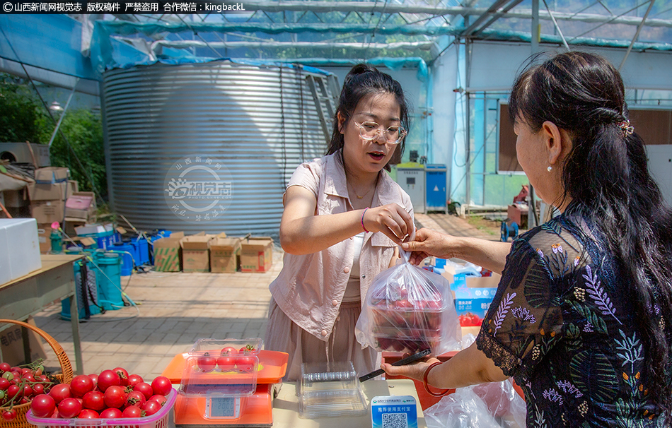 7月5日,乡宁县管头镇井上村现代农业产业园内,游客穿梭藤蔓间采摘圣女果。近年来,村党支部推进“头雁工程”,村干部包片跑销路、育人才、拓新路,借直播带货拓展渠道,以实干让大棚成为“增收田”与振兴“试验田”,结出“增收果”,点燃振兴火种,绘就乡村振兴新画卷,写下生动注脚 。