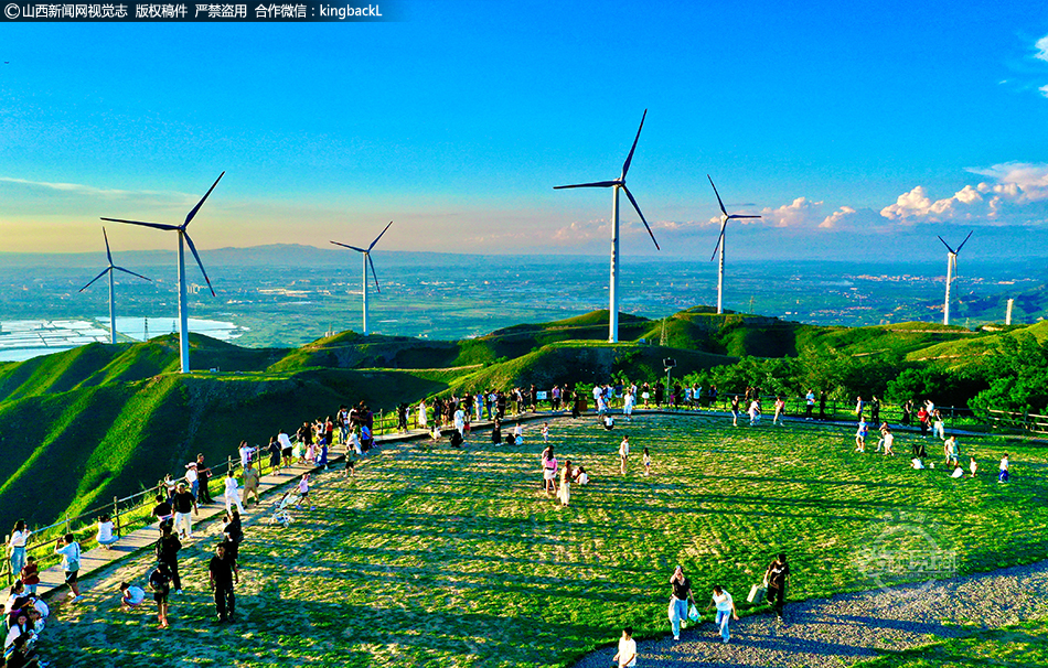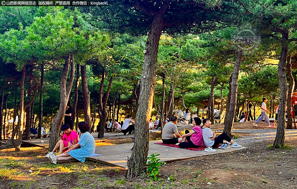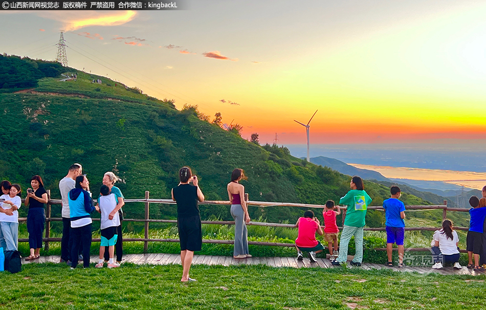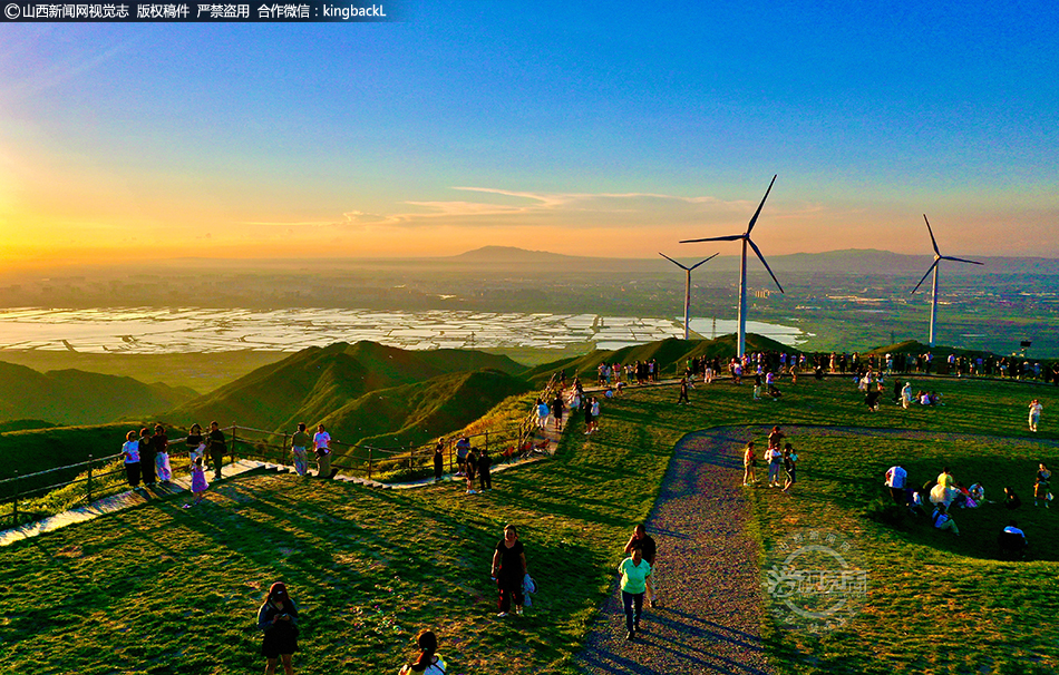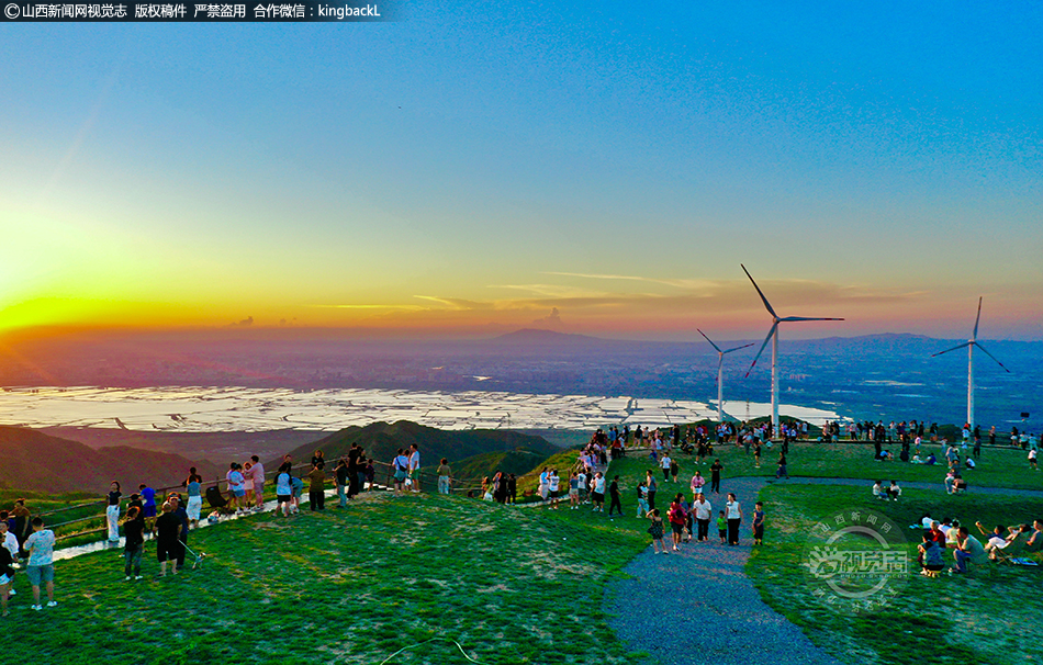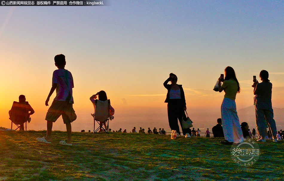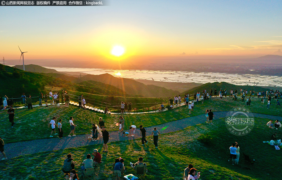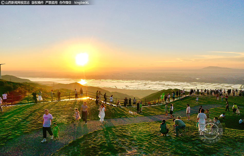 近日,山西省运城市平陆县风口山国家森林康养基地成为热门打卡点。在夕阳的映衬下,游客们正在赏盐湖落日、享受暑期惬意时光,沉醉于“落日熔金”的美景中。