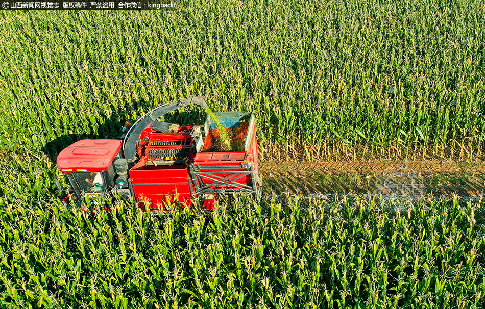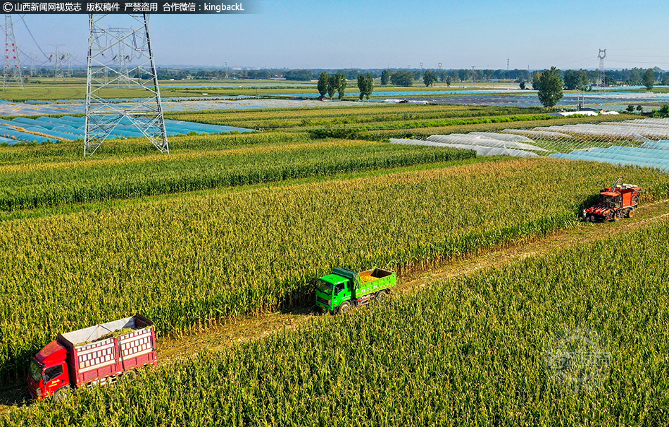 8月20日,运城市夏县瑶峰镇大洋村玉米种植基地,村民驾驶农机在收获早熟玉米。