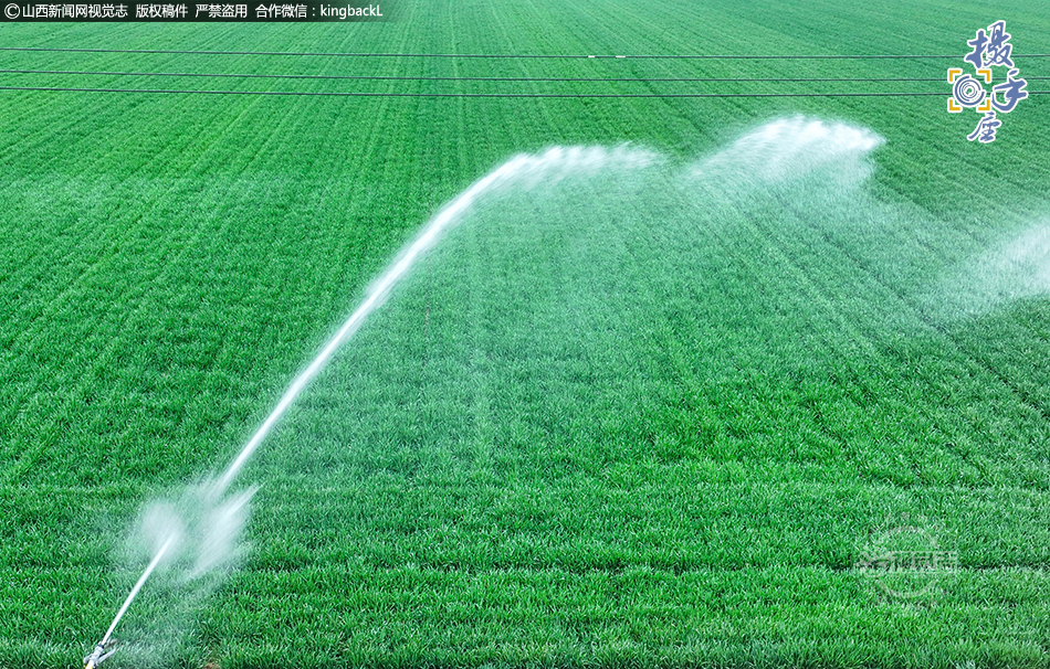 4月11日,夏县胡张乡王学家庭农场正在给小麦进行喷灌浇水作业。