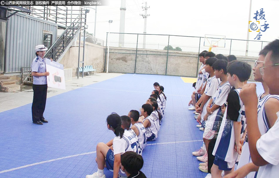 7月8日,山西省平陆县公安局交通管理大队民警走进平陆一篮球俱乐部开展暑期交通安全宣传活动,为孩子们上了一堂生动的交通安全课,扎实筑牢中小学生暑期交通安全屏障。