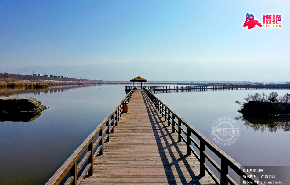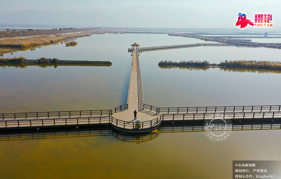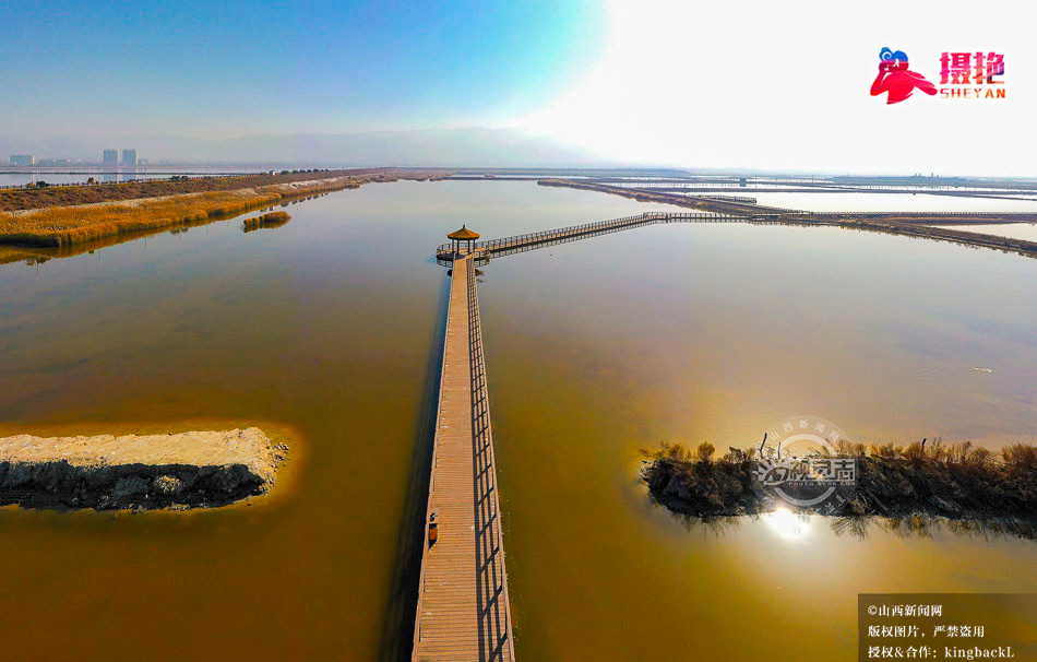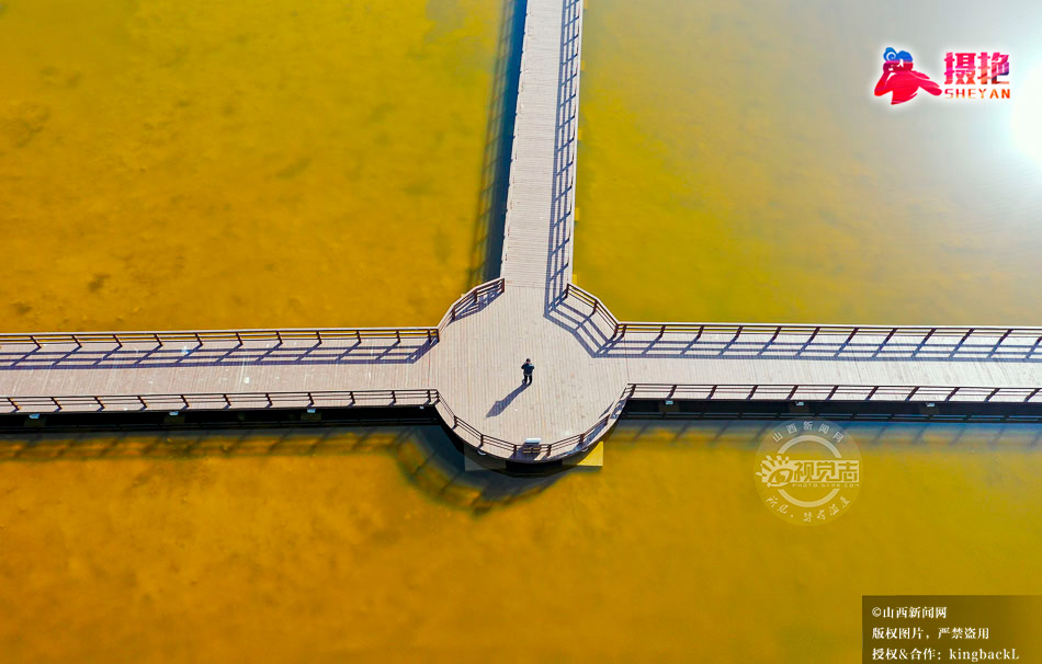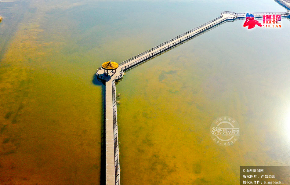 摄艳|航拍盐湖木栈道 尽显湖光生态美