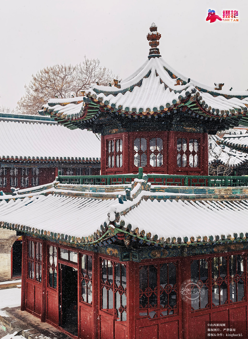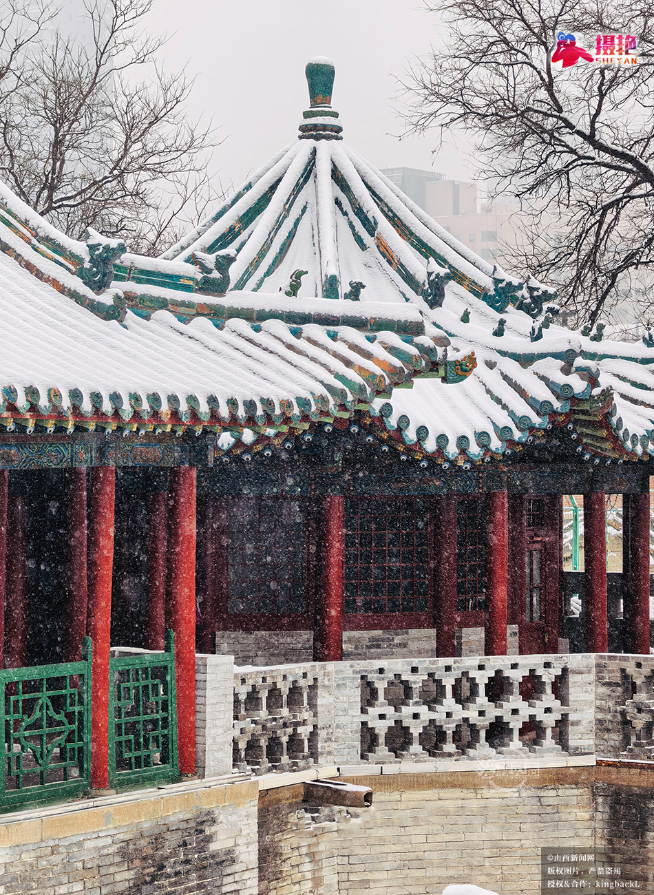 摄艳|红墙黛瓦披银装 太原纯阳宫雪景韵味悠长