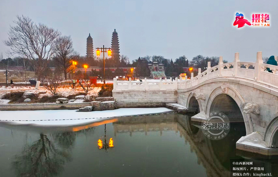 摄艳|太原双塔公园雪后初霁 双塔霞光映雪美出圈
