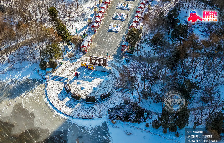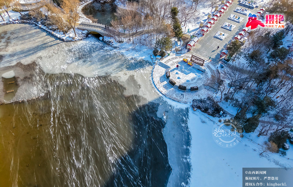 摄艳|雪落晋商公园 浮冰线条勾勒美