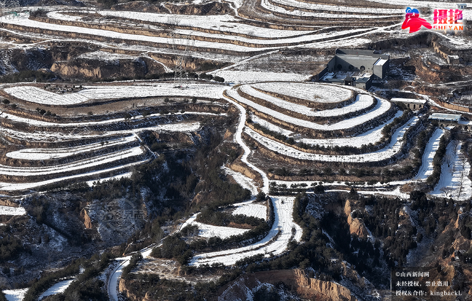 摄艳|雪覆阳曲梯田 铺展水墨长卷