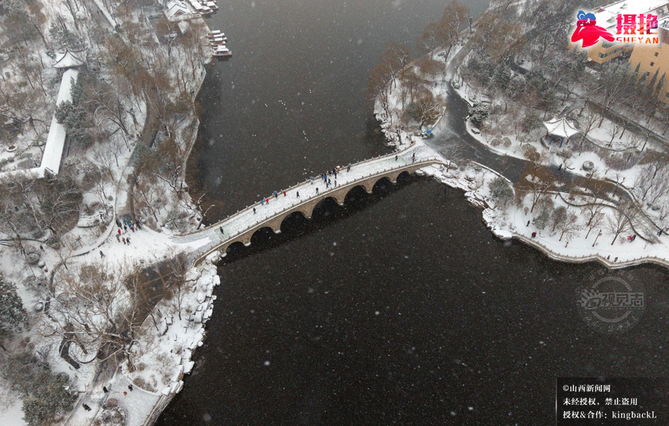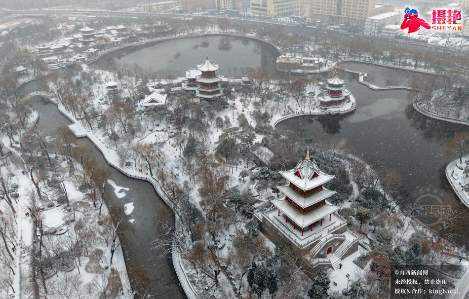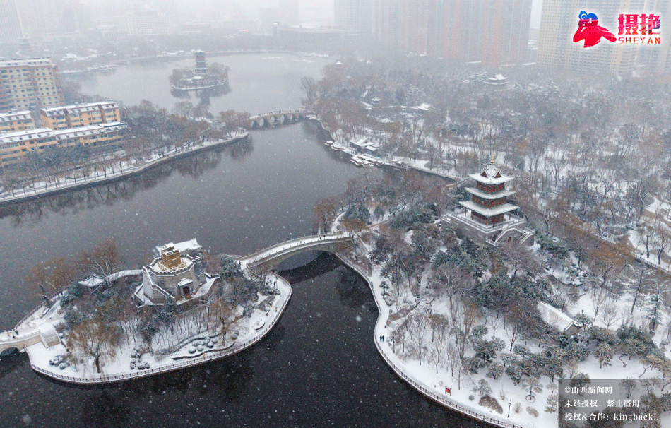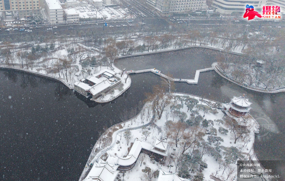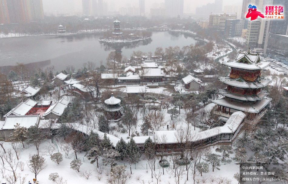 摄艳|迎泽公园:楼阁“绣”银装 一园古韵入画来