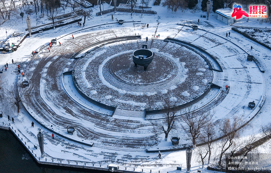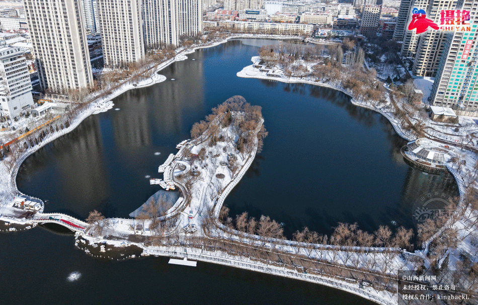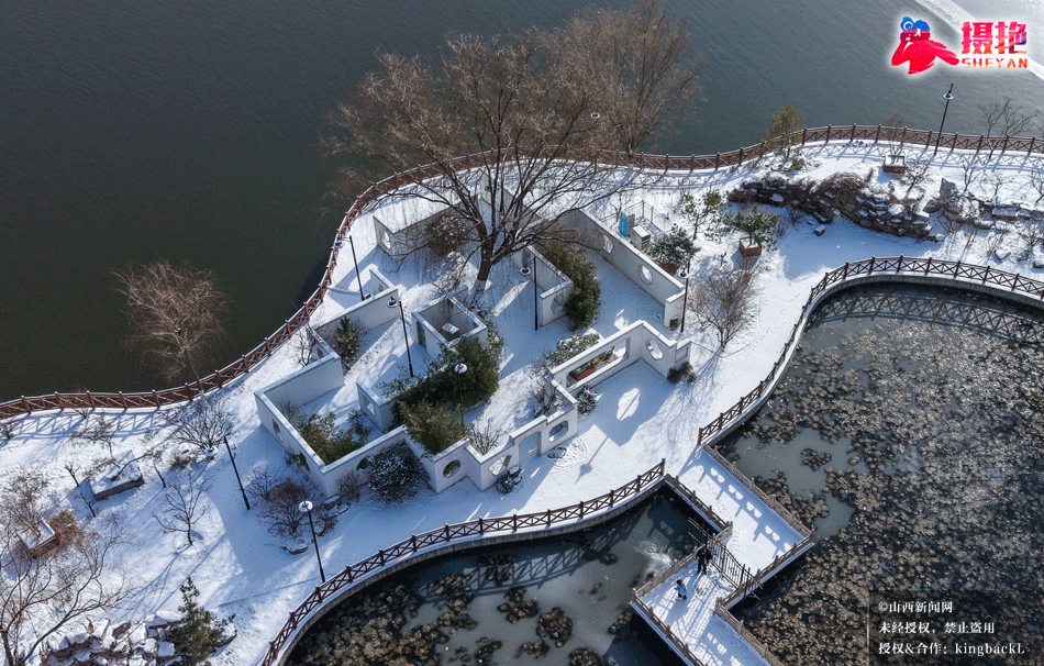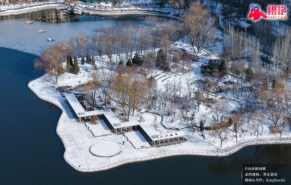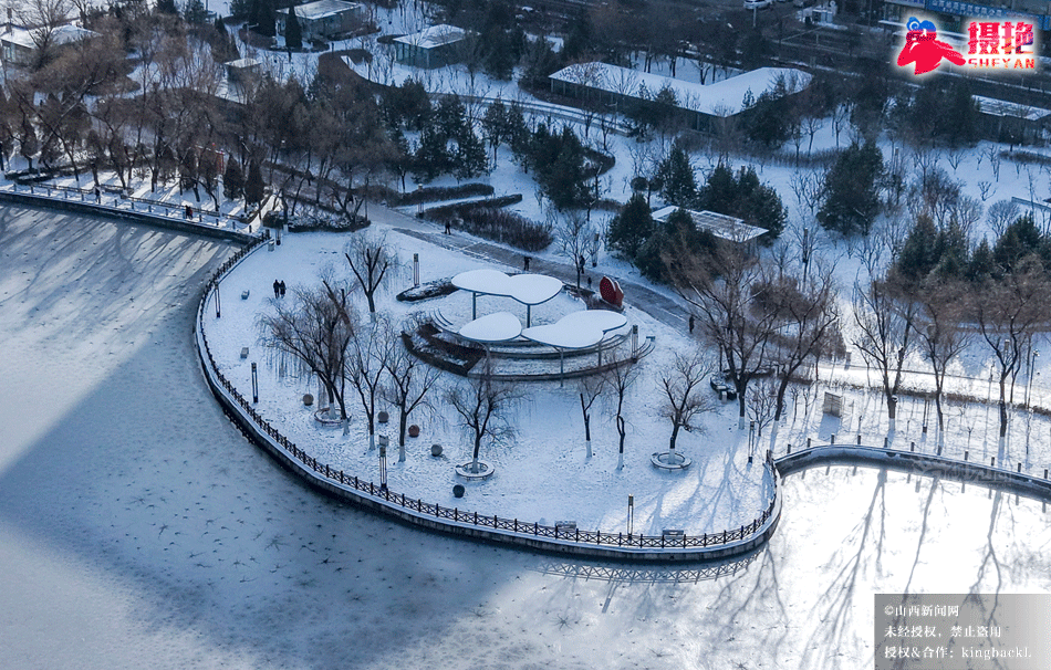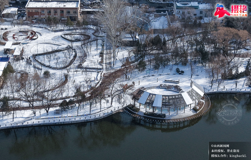 摄艳|雪落龙潭:航拍太原龙潭公园的水墨冬韵