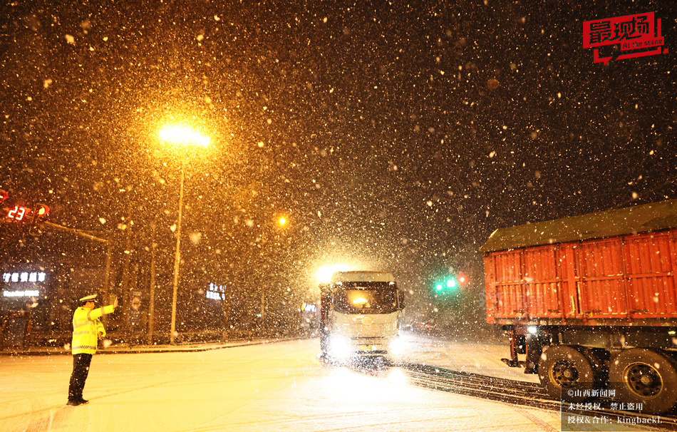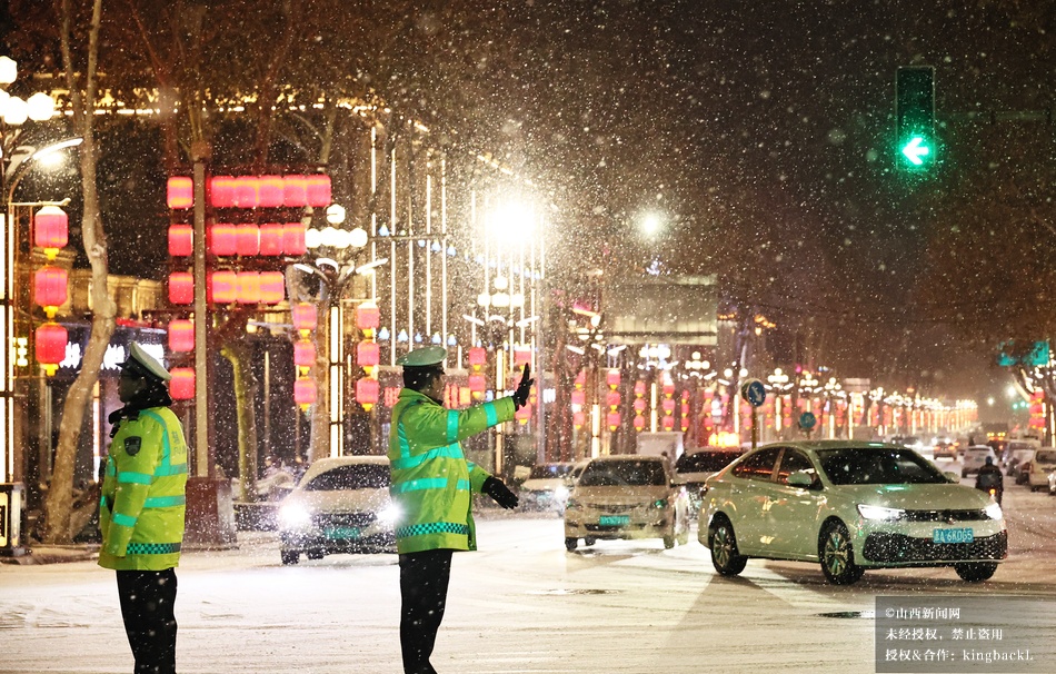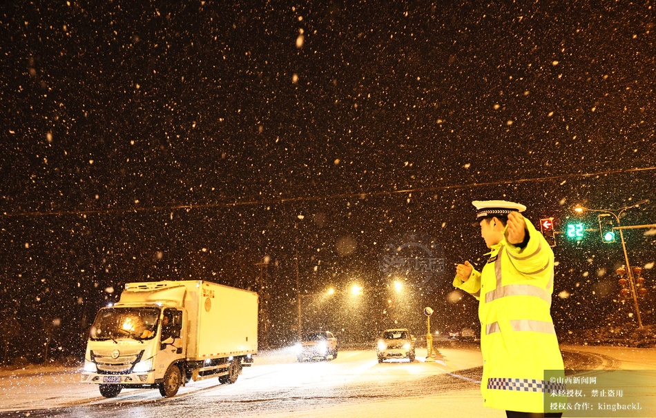 山西绛州:寒潮暴雪袭古城 交警坚守护平安