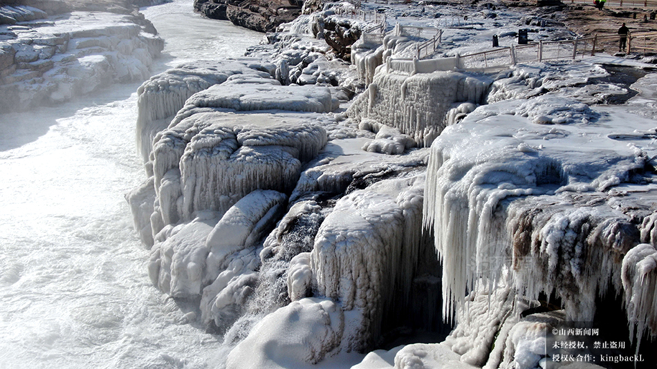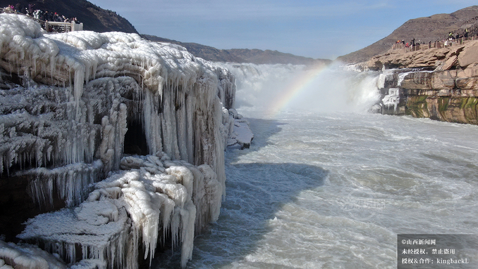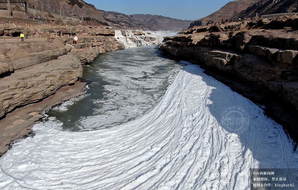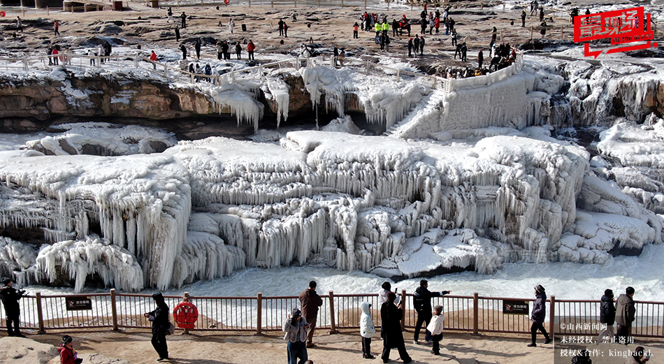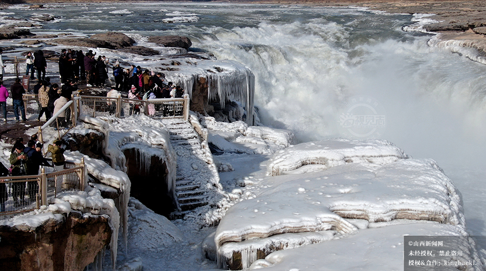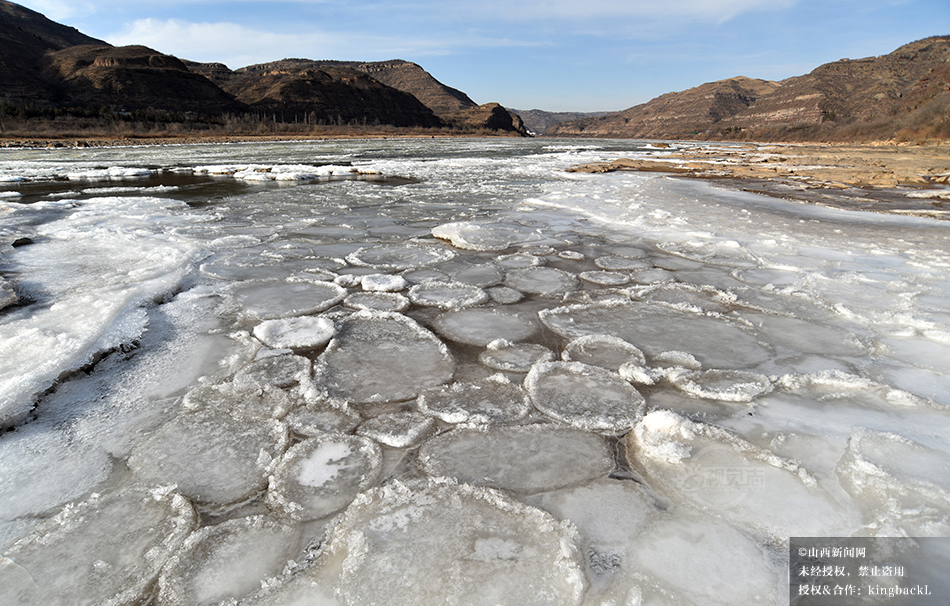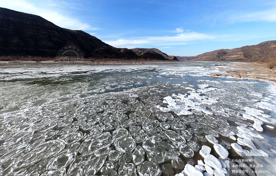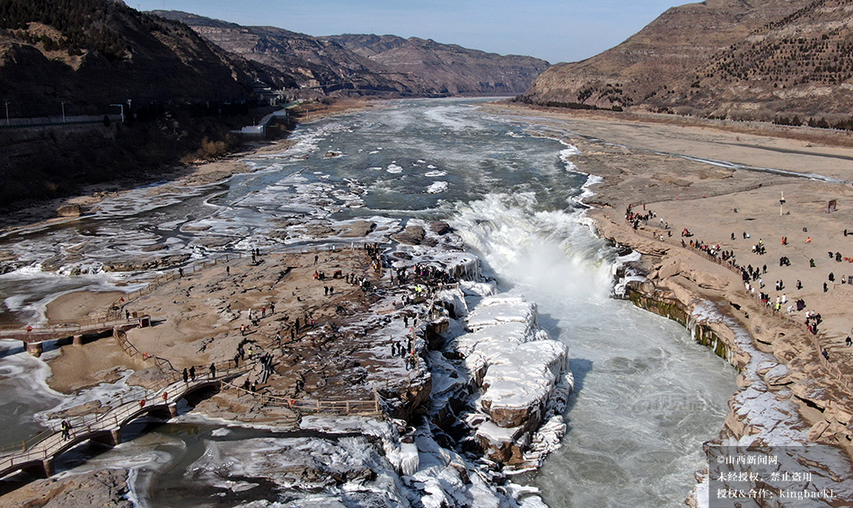 山西吉县:黄河壶口瀑布现流凌封河景观