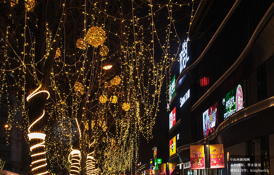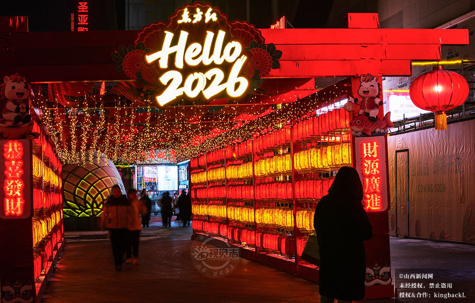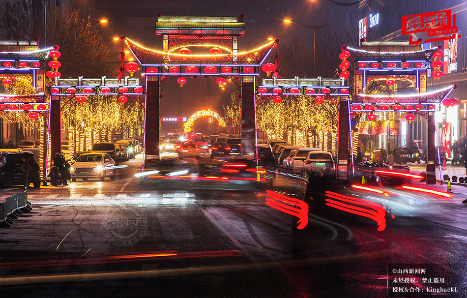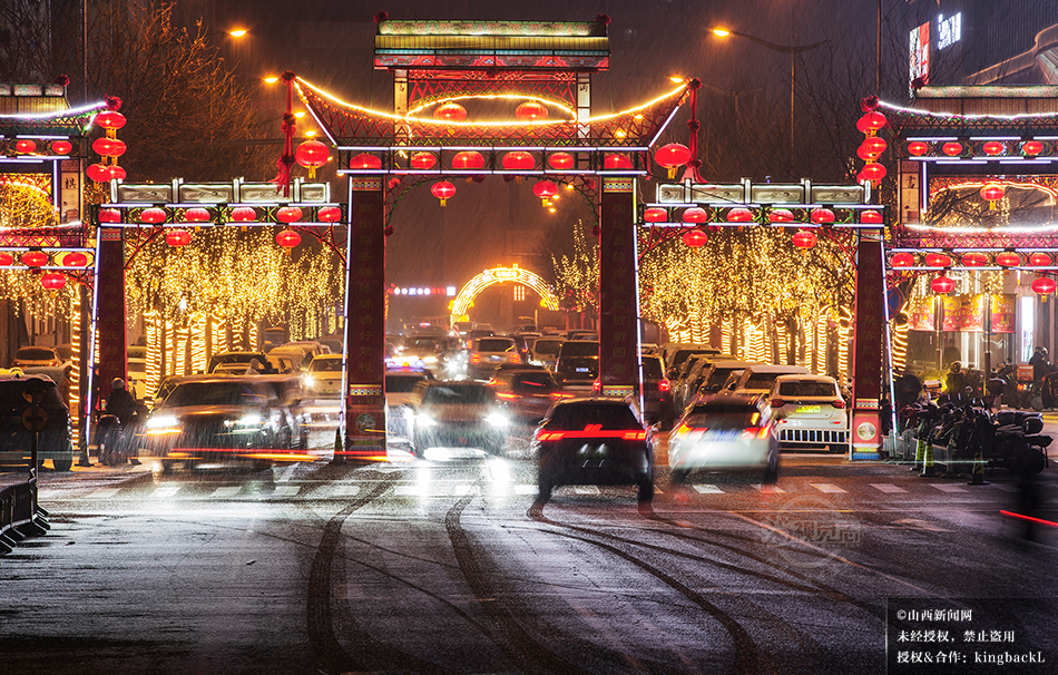山西太原:瑞雪映灯影 朝阳街上年味浓