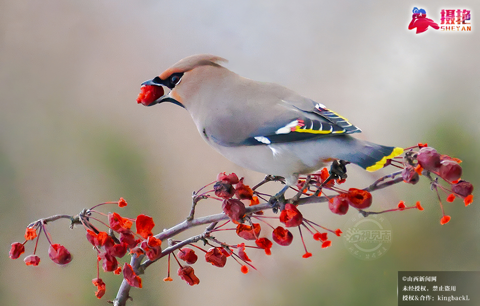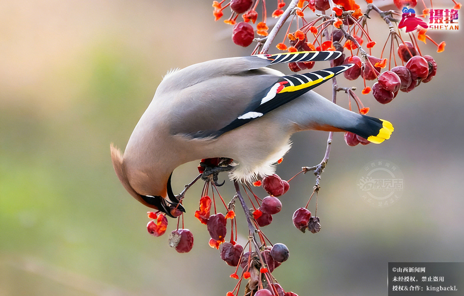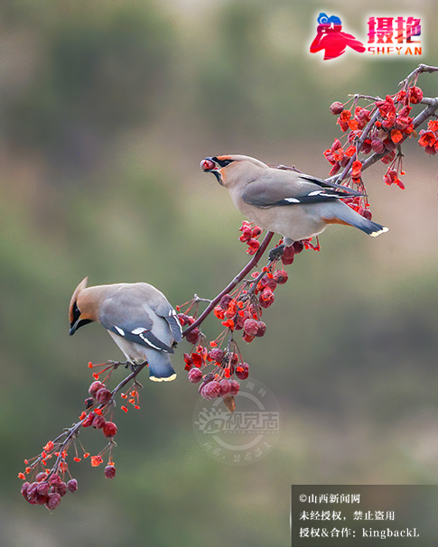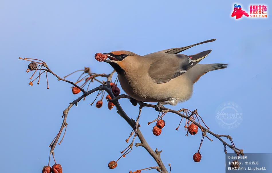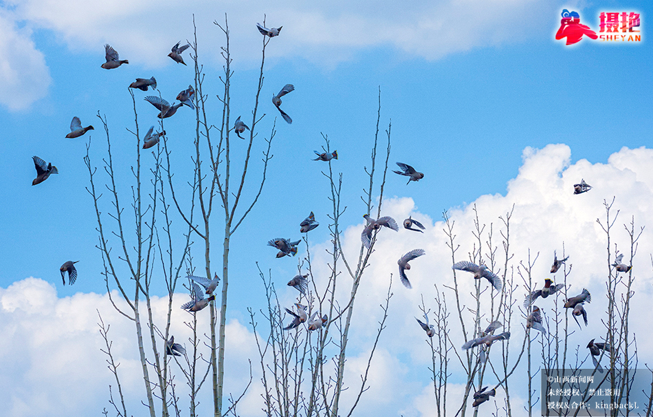 摄艳|灵丘唐河公园迎来数百只太平鸟