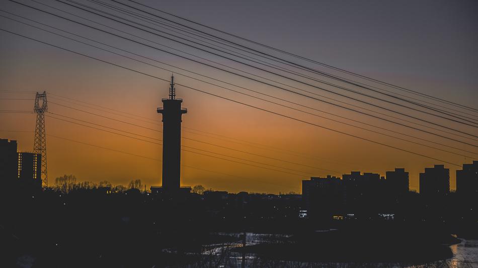 摄艳|汾河望岳阁:冬日晚霞绘就暖调画卷