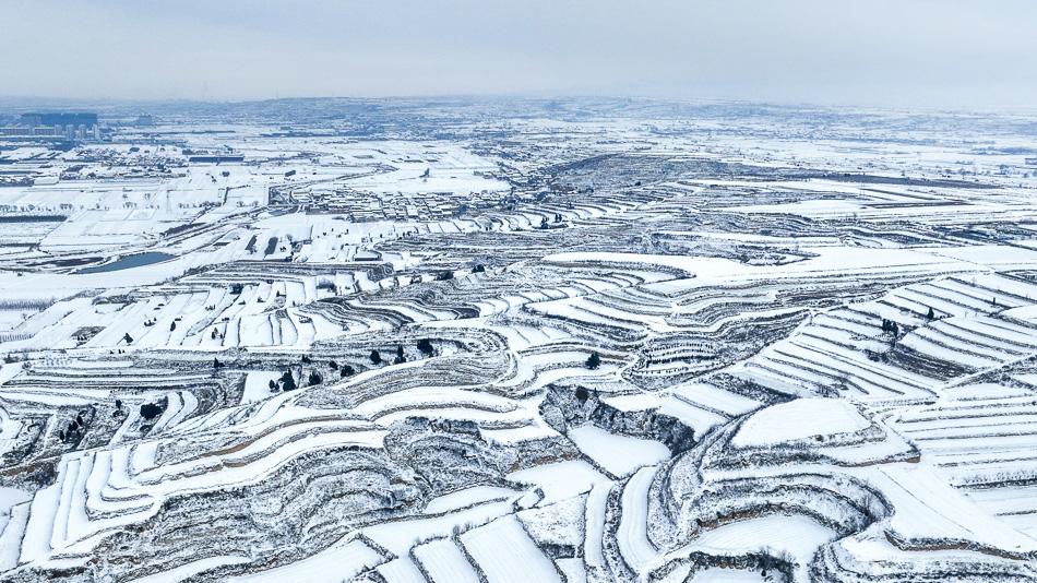 雪落永和梯田 黄土高原绘就冬日诗意画卷