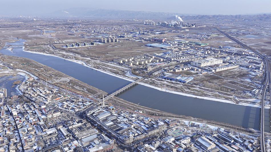 冬日冰晶奇观 汾河霍州段生态修复碧水美景
