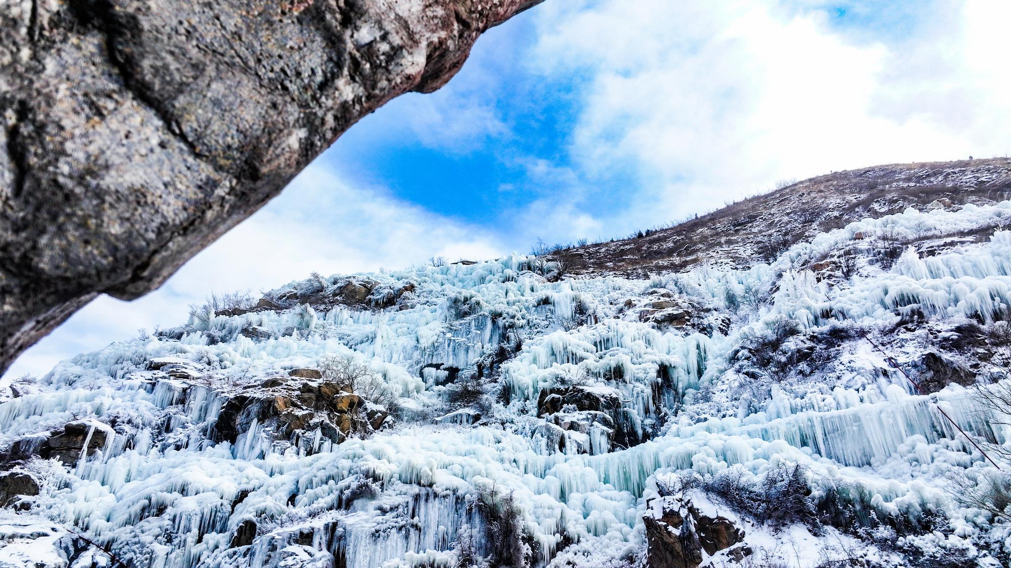 山西五台:门限石滴水崖冬日冰瀑凝玉