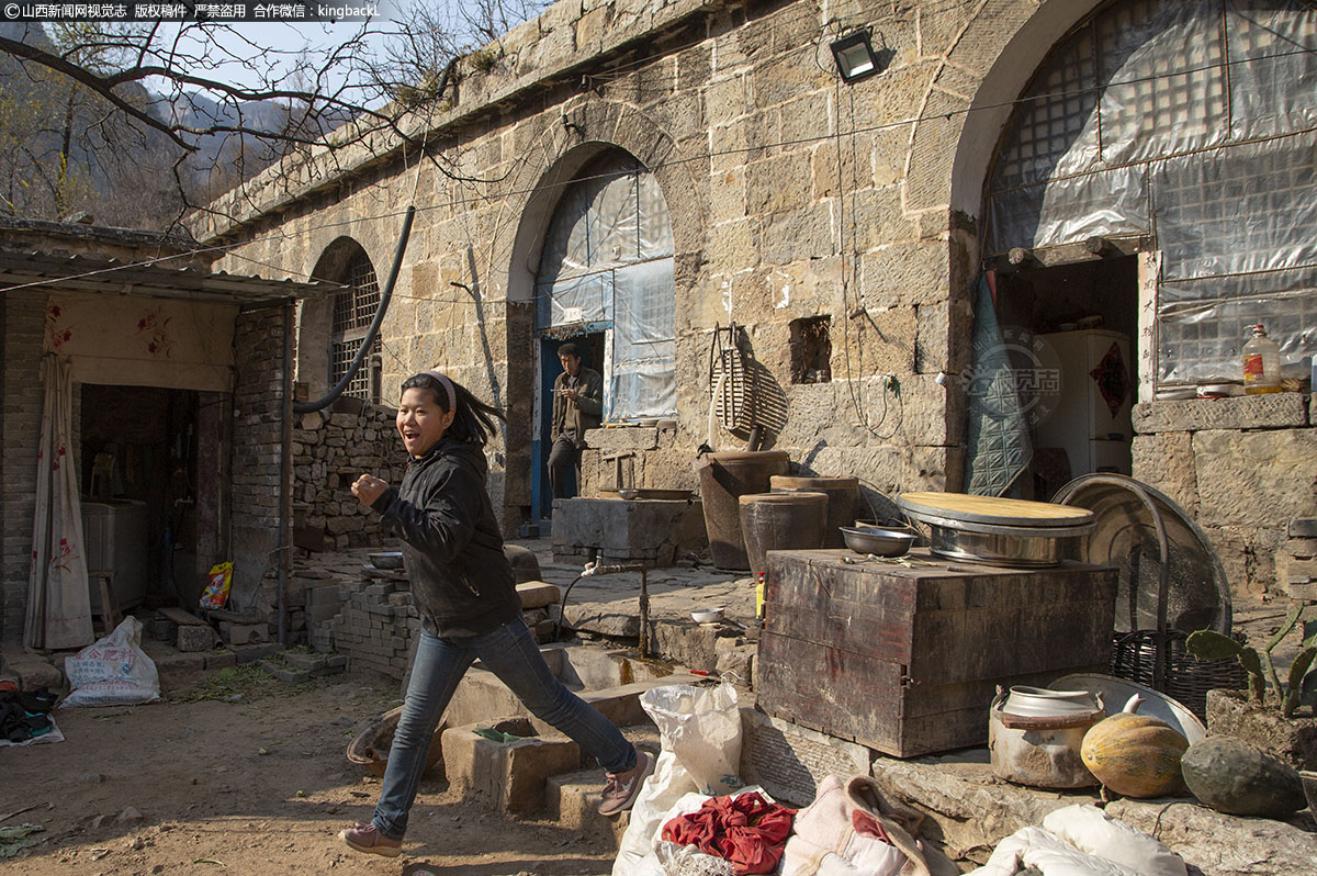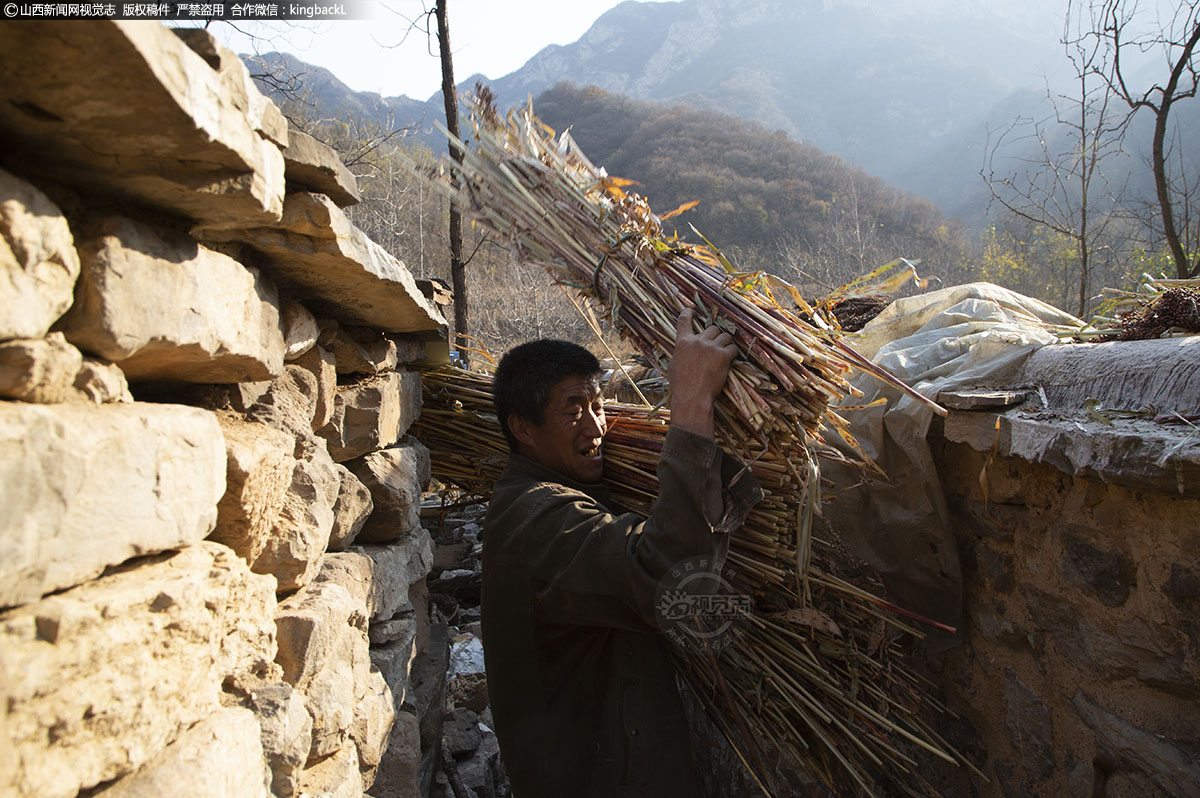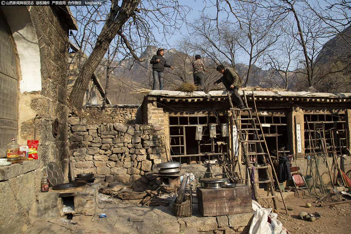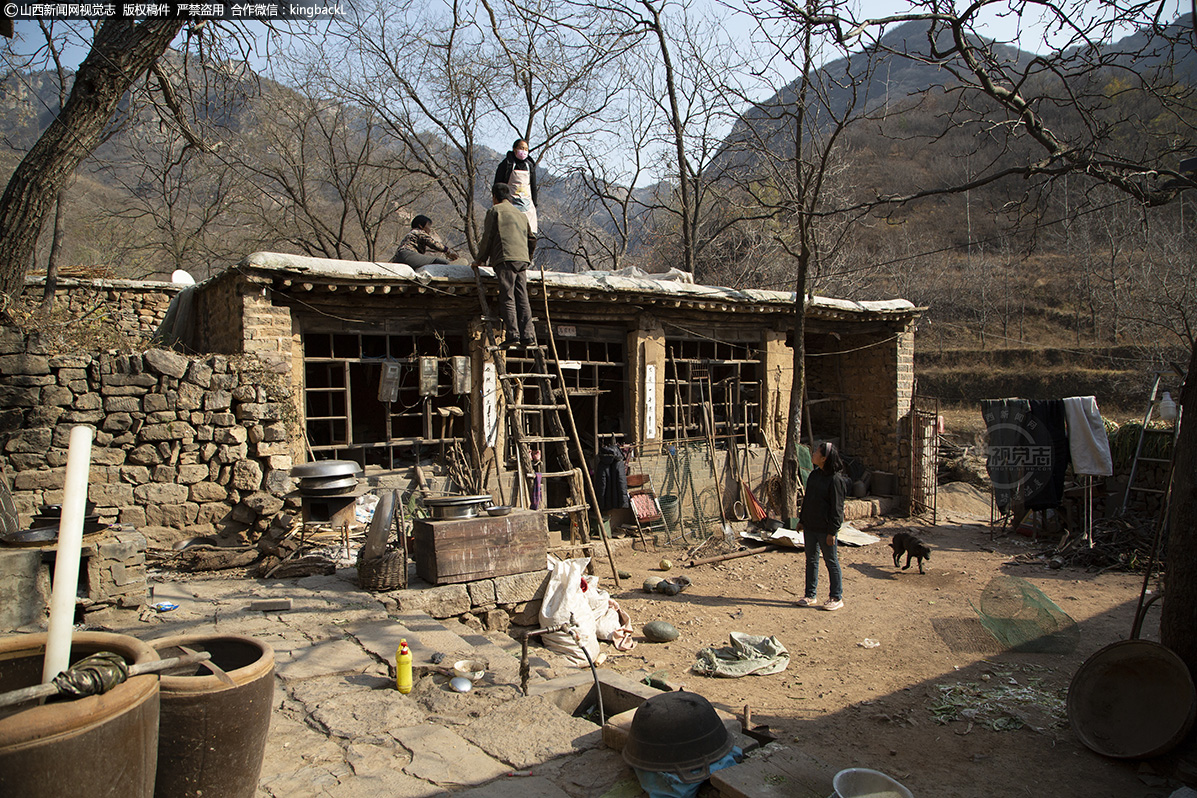 正当采访结束时,拍摄《白毛女》电视剧组外景搭建工作人员也来到这里。谷锁柱家的邻居院落成为取景拍摄地之一,他们家也竭尽全力的帮忙。