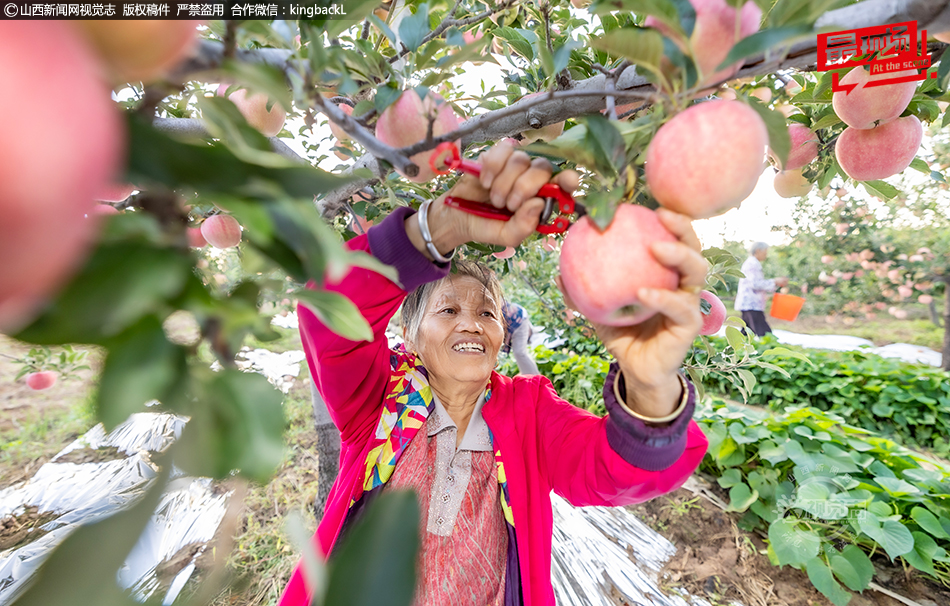9月12日,山西省运城市平陆县部官镇阳朝村的果园里,处处洋溢着丰收的喜悦。红彤彤的苹果挂满枝头,饱满诱人。果农们穿梭其中,有的熟练地用工具采摘苹果,有的仔细分拣、搬运,将新鲜的苹果收集起来,准备供应市场。金秋的阳光洒在果园,映着果农们忙碌而满足的身影,构成了一幅生动的乡村丰收图景。■摄影师:权永军