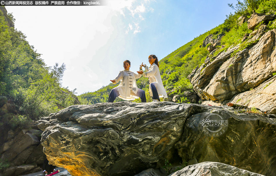 9月13日,运城市夏县南大里乡果老仙谷景区,许多游人和摄影爱好者在悬崖陡壁、巨石林立、流水潺潺的山沟里尽兴游玩、打卡拍照,探寻25亿年前火山喷发及地壳运动留下的“时光刻痕”,乐享周末美好时光。 摄影师:张秀峰