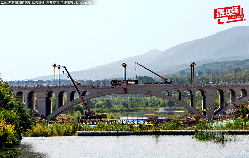 9月中旬,太原市区北部跨越汾河的桥梁即将迎来一位新成员——净因桥。净因桥建设经过上千名建设者近一年努力,工程已进入扫尾阶段。净因桥是目前我市汾河上唯一的石拱桥样式的桥梁。净因桥的得名来自旁边的2006年6月25日国务院公布为第六批全国重点文物保护单位净因寺。建成后的净因桥,东接滨河东路、西通净因寺,该桥全长374米,宽30米,双向6车道。桥上的花岗岩护栏更是一大亮点。石质护栏上精雕细琢,体现出浓郁的中国传统文化。净因桥建成通车后将进一步为北部片区注入新的发展动能,改善区域交通环境,加快出行速度,成为市民休闲散步、骑行的“新打卡点”,同时提升市民生活品质,推动太原向“更宜居、更畅通、更具活力”的现代化城市迈进。■山西新闻网特约摄影师: 聂行明