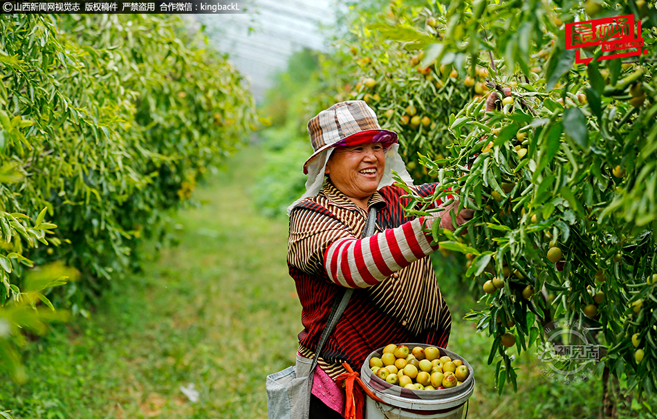 9月10日,在山西省襄汾县邓庄镇席村冬枣种植基地内,种植户对大棚冬枣开展采收作业。白露过后,位于山西省襄汾县邓庄镇席村的300余亩冬枣种植基地内,颗颗硕大饱满的冬枣已挂满枝头,满目翠绿,长势喜人。当地种植户正忙着开展采收、分拣、装箱、销售等一系列作业,呈现出一派忙碌的丰收景象。近年来,山西省襄汾县邓庄镇大力发展特色农业种植产业,通过实施科学化种植和水肥一体化管理体系,冬枣的产量、质量、规模都有了显著提升。目前,小小冬枣树已经成为当地富民大产业,有效促进了农业增效,农民增收。山西新闻网特约摄影师:李现俊