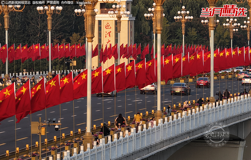 国庆临近,太原迎泽大桥已被“中国红”点亮,成为市民与游客热门打卡地。桥栏两侧,五星红旗沿桥舒展,在秋风中猎猎作响,与汾河碧波相映成趣。四座桥头堡灯火璀璨,“迎泽大桥”红字醒目,汉白玉栏杆相映成景,市民或拍照,或驻足远眺。山西新闻网特约摄影师:李红