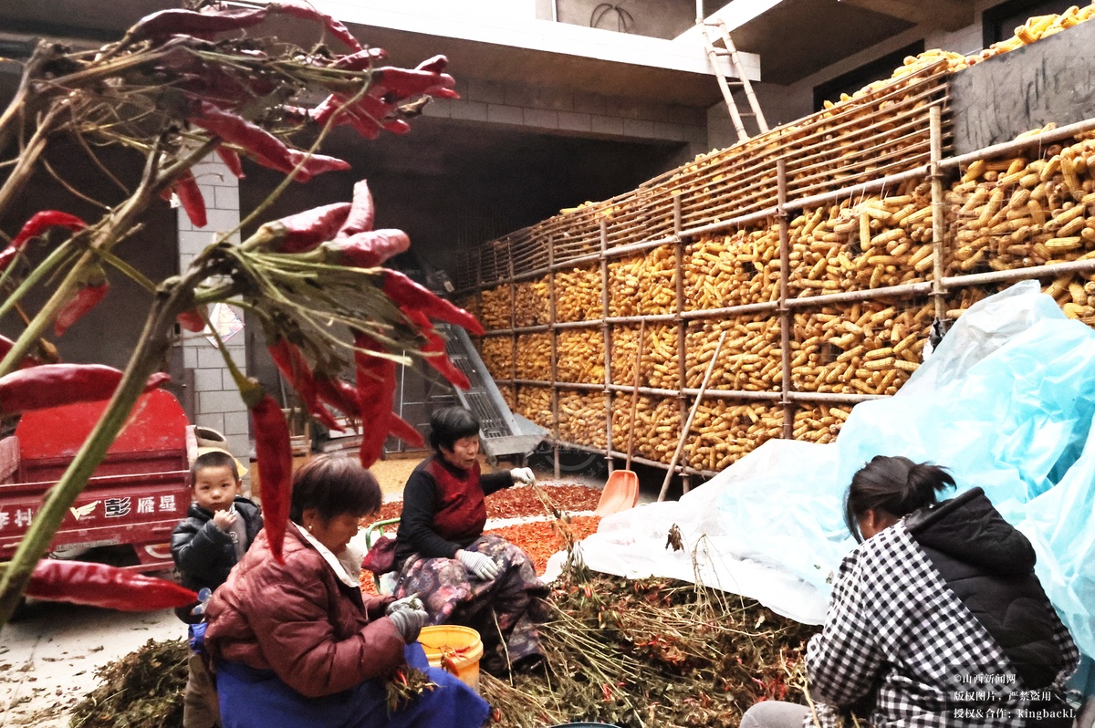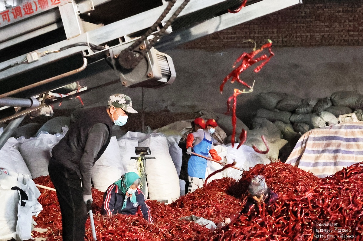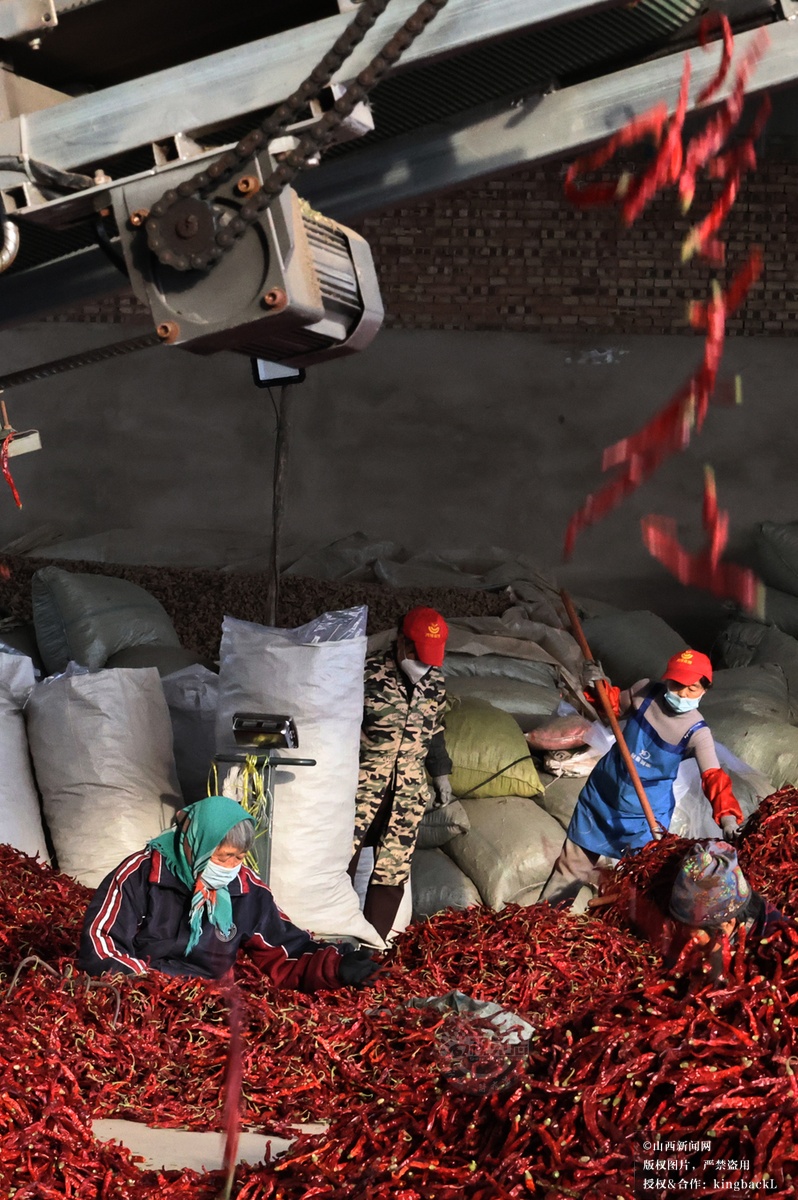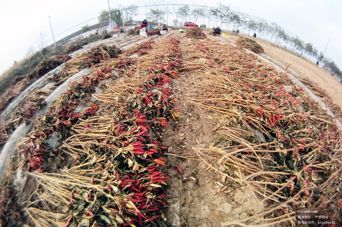 11月22日,时值农历蛇年二十四节气中的“小雪”。在山西省临汾市襄汾县赵康镇赵康、赵雄等村,山樱椒、高辣王等辣椒进入收获收购加工销售旺季。辣椒专业合作社、辣椒公司、农家大院和连片辣椒田间,处处跃动着椒农们忙碌的身影,空气中也仿佛弥漫着辣椒特有的辛香与丰收的喜悦,构成了一幅“火辣辣”的迎小雪、忙增收的生动图景。■本期摄影:高新生