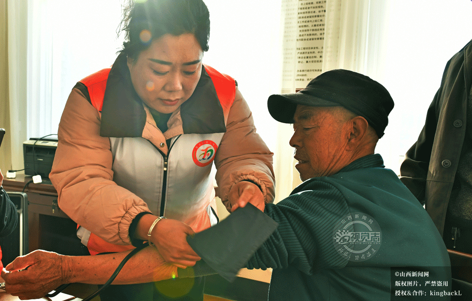 医疗志愿者携带血压仪、血氧仪等设备,为老人们展开细致入微的体检。他们俯身倾听老人的诉说,指尖轻触脉搏,眼神专注如对待亲人。面对老人的疑问,志愿者们耐心解答,用通俗的语言讲解冬季慢性病防护知识,并根据检查结果给出个性化建议。