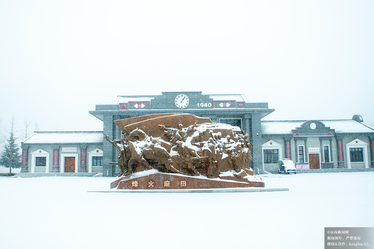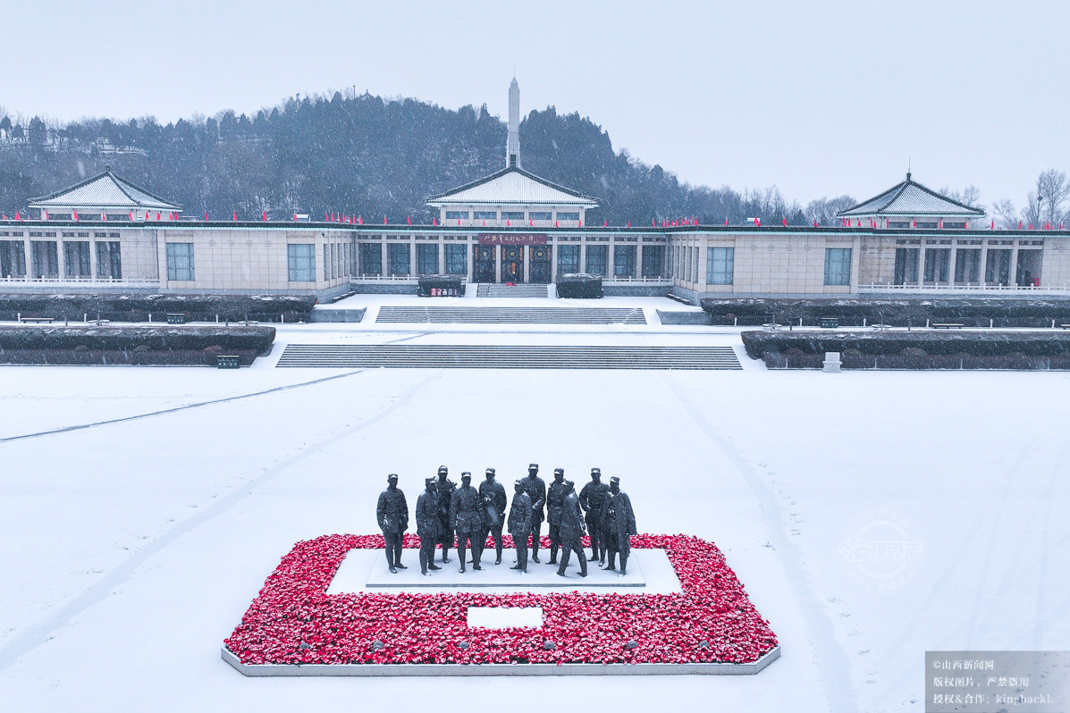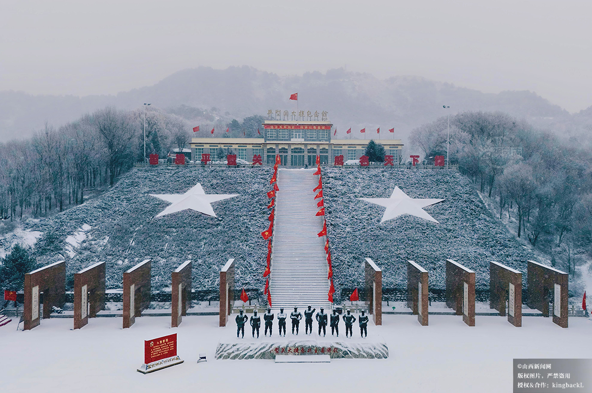 12月12日,拍摄于武乡县八路军太行纪念馆。纪念馆广场雪景辽阔,红色记忆在白雪映衬下愈发鲜明。山西新闻网特约摄影师:李勇
