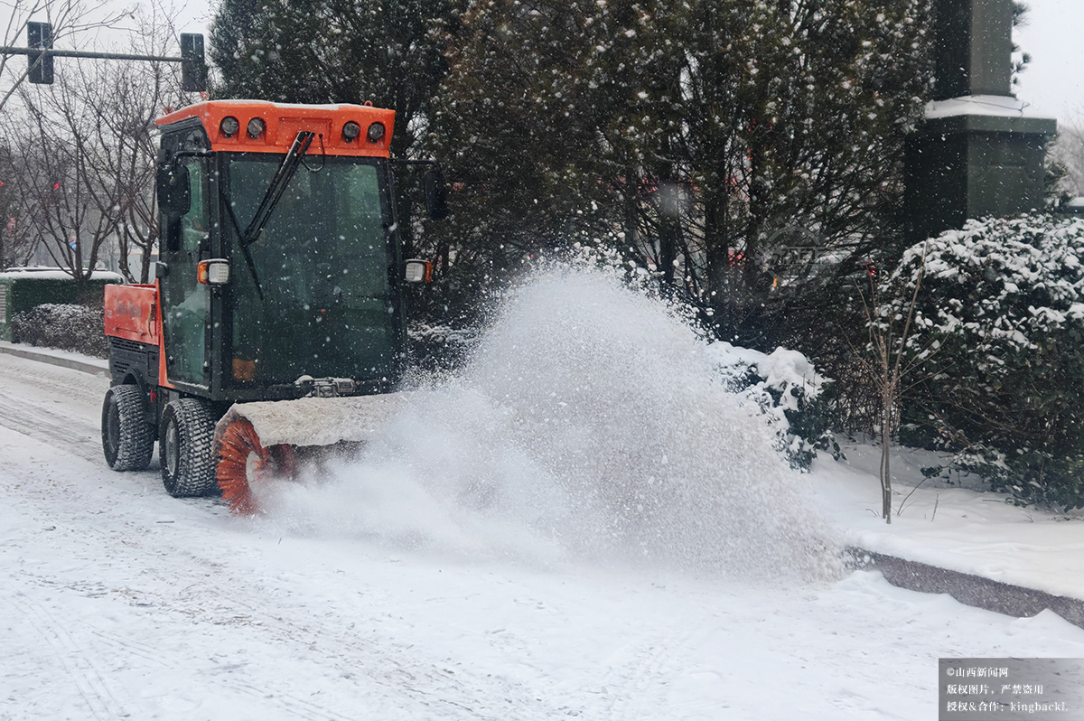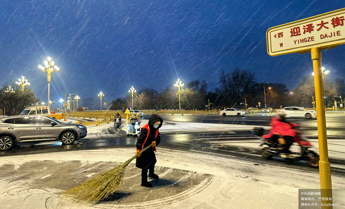 12月12日早8时,拍摄于左云县城。 环卫工人冒雪清扫的身影,成为雪中温暖的风景线。山西新闻网特约摄影师:戴根虎