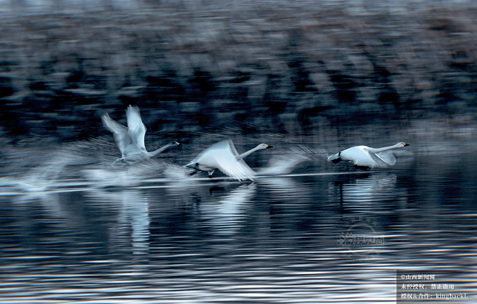 11月下旬,朔州市太平窑水库迎来数千只大天鹅、大雁等候鸟栖息。成群的天鹅或悠然游动觅食,或嬉戏鸣叫,时而展翅飞向天空。©山西新闻网 发|特约摄影师 聂行明