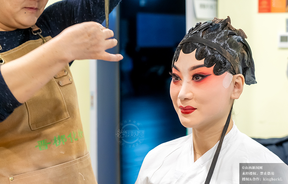12月26日晚,《2026 山西新年戏曲晚会》在山西大剧院完成录制。晚会录制前,后台化妆间灯火通明,戏曲演员们正对镜细致描画妆容。©山西新闻网 发|崔轶鹏 摄